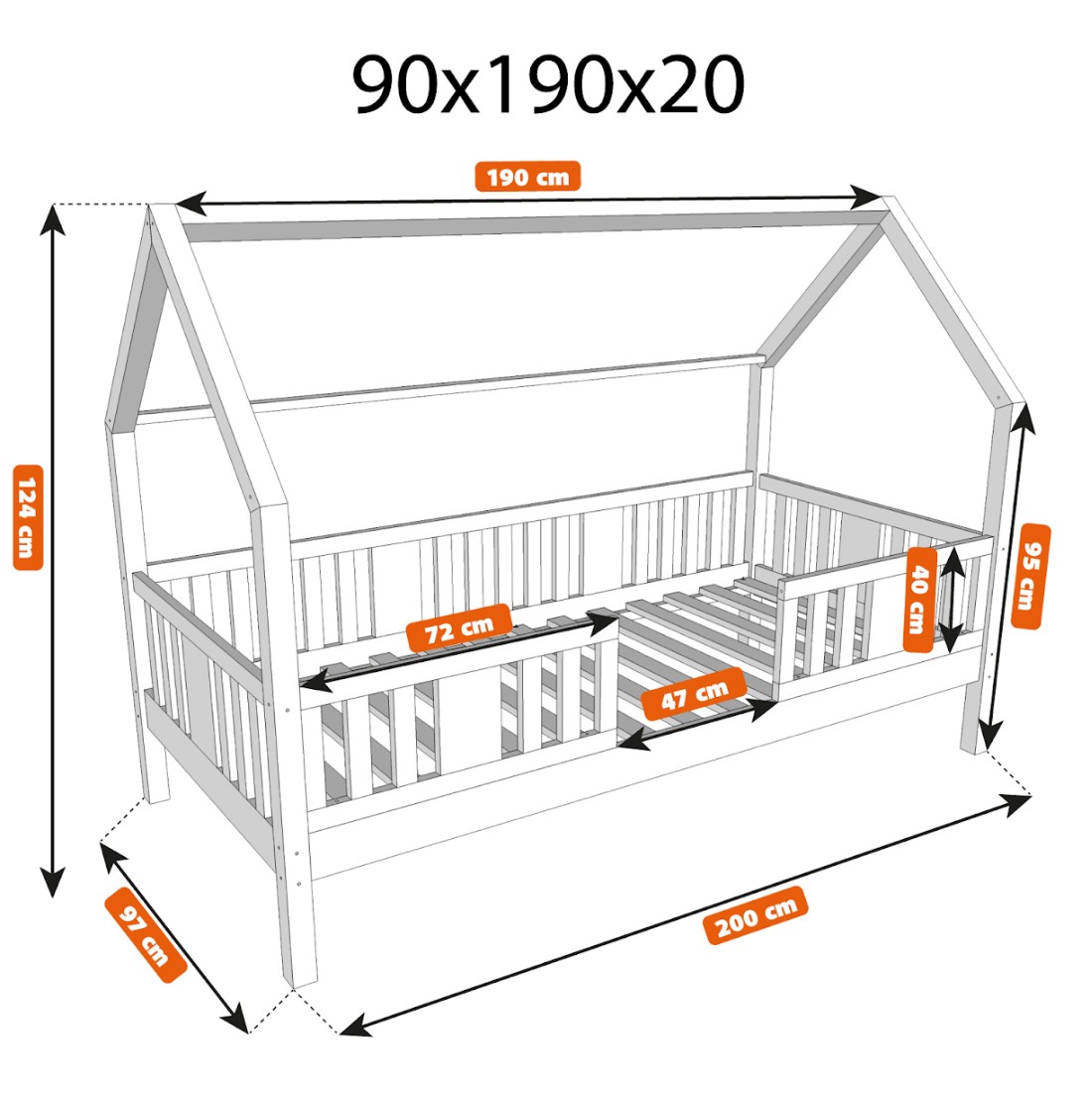 Dětská domečková postel z masivu borovice NIKO L 20 - 190x90 cm