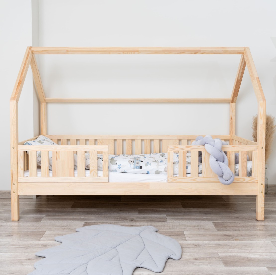 Dětská postel NIKO L 20 cm s nebesy je funkční postel do domu vyrobená z přírodního borovicového dřeva. Zvýšený rám umožňuje přidání zásuvek, čímž se zvětší úložný prostor pro ložní prádlo, oblečení a hračky. Stabilní konstrukce a ekologické barvy na vodní bázi, které splňují normy EU, zaručují bezpečnost a odolnost. Dekorativní nebesa vytvářejí v pokoji pohádkovou atmosféru a kombinují pohodlný spánek s kreativním prostorem pro hraní a relaxaci každého dítěte. Vyšší rám (20 cm) umožňuje přidání zásuvek – ideální pro uložení ložního prádla, oblečení nebo hraček. Postel NIKO L 20 je vyrobena z vysoce kvalitního, přírodního borovicového dřeva o síle 2,2 cm, které je odolné, bezpečné a hřejivé. Dřevěné povrchy jsou pečlivě broušené a chráněné ekologickými barvami na vodní bázi, které splňují evropské bezpečnostní normy EN 71-3. Postel nabízíme také ve verzi bez povrchových úprav - nelakované dřevo. Díky tomu ji lze snadno přizpůsobit - její vzhled můžete upravit mořením, lakováním nebo malováním dle vlastního uvážení. Baldachýn vytváří jedinečný, útulný prostor, který podporuje relaxaci i každodenní hraní.