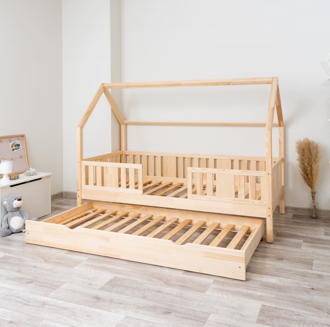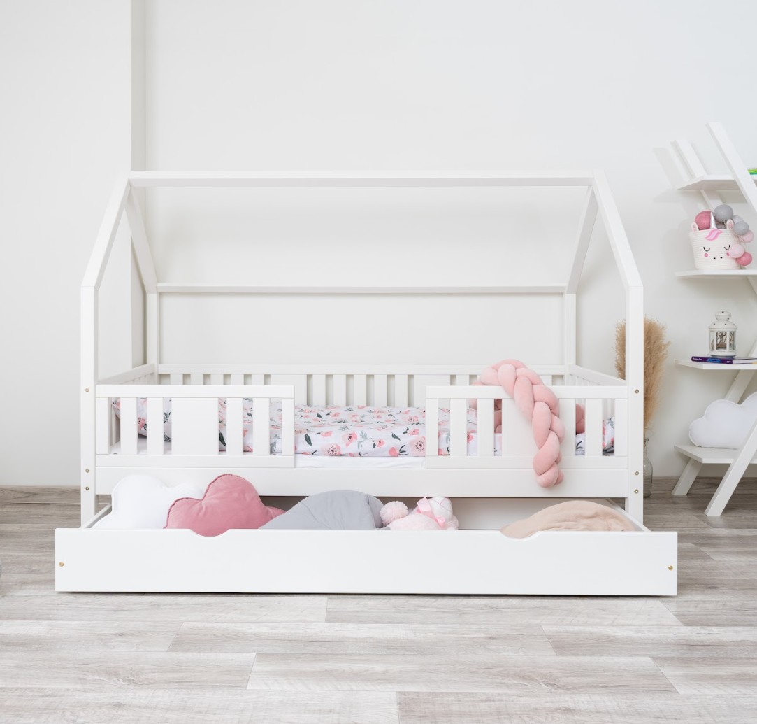 Výška nohou 20 cm otevírá nové designové možnosti. Pod postel můžete umístit jednu velkou zásuvku, dvě menší nebo zásuvku s funkcí spaní – ideální řešení pro sourozence nebo hosty. Je to praktické místo pro uložení ložního prádla, oblečení, dek a oblíbených hraček, které máte vždy na dosah ruky, ale mimo dohled. Díky tomu je NIKO L 20 nejen krásným designovým prvkem, ale také funkčním kusem nábytku, který pomáhá udržovat harmonii a pořádek v dětském prostoru.