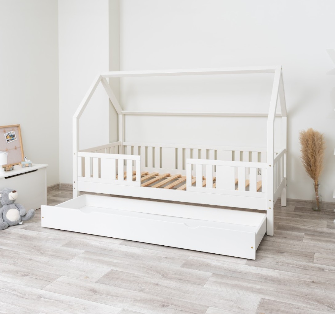 Tato dětská postel je vytvořena tak, aby ušetřila prostor v dětském pokoji. K posteli lze také dokoupit praktický a prostorný šuplík z masivu v několika variantách: