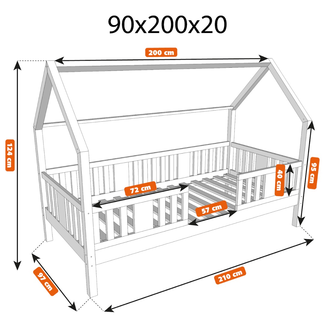 Dětská domečková postel z masivu borovice NIKO L 20 - 200x90 cm