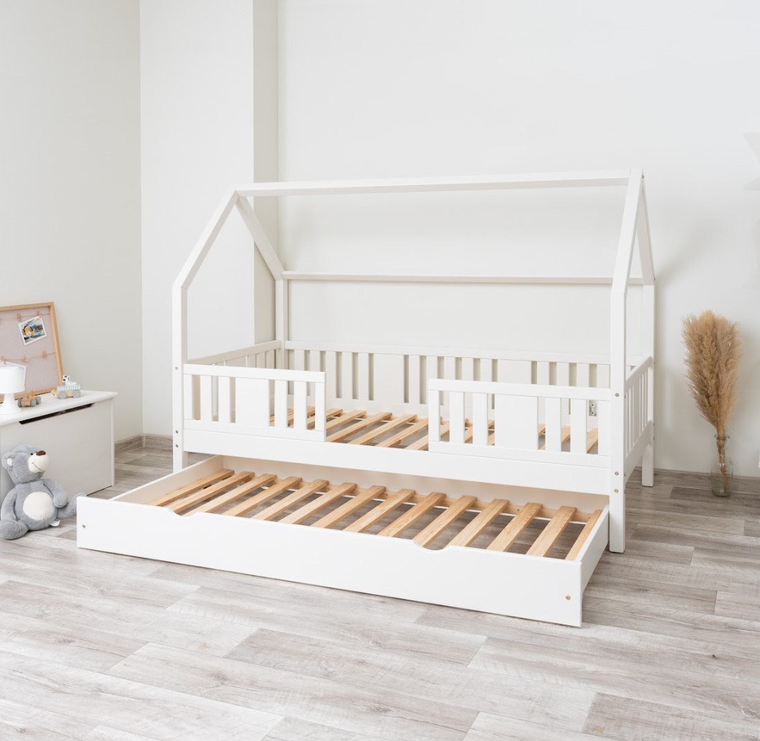 Tato dětská postel je vytvořena tak, aby ušetřila prostor v dětském pokoji. K posteli lze také dokoupit praktický a prostorný šuplík z masivu v několika variantách:
