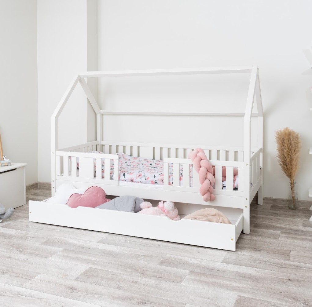 Dětská postel NIKO L 20 cm s nebesy je funkční postel do domu vyrobená z přírodního borovicového dřeva. Zvýšený rám umožňuje přidání zásuvek, čímž se zvětší úložný prostor pro ložní prádlo, oblečení a hračky. Stabilní konstrukce a ekologické barvy na vodní bázi, které splňují normy EU, zaručují bezpečnost a odolnost. Dekorativní nebesa vytvářejí v pokoji pohádkovou atmosféru a kombinují pohodlný spánek s kreativním prostorem pro hraní a relaxaci každého dítěte. Vyšší rám (20 cm) umožňuje přidání zásuvek – ideální pro uložení ložního prádla, oblečení nebo hraček. Postel NIKO L 20 je vyrobena z vysoce kvalitního, přírodního borovicového dřeva o síle 2,2 cm, které je odolné, bezpečné a hřejivé. Dřevěné povrchy jsou pečlivě broušené a chráněné ekologickými barvami na vodní bázi, které splňují evropské bezpečnostní normy EN 71-3. Postel nabízíme také ve verzi bez povrchových úprav - nelakované dřevo. Díky tomu ji lze snadno přizpůsobit - její vzhled můžete upravit mořením, lakováním nebo malováním dle vlastního uvážení. Baldachýn vytváří jedinečný, útulný prostor, který podporuje relaxaci i každodenní hraní.