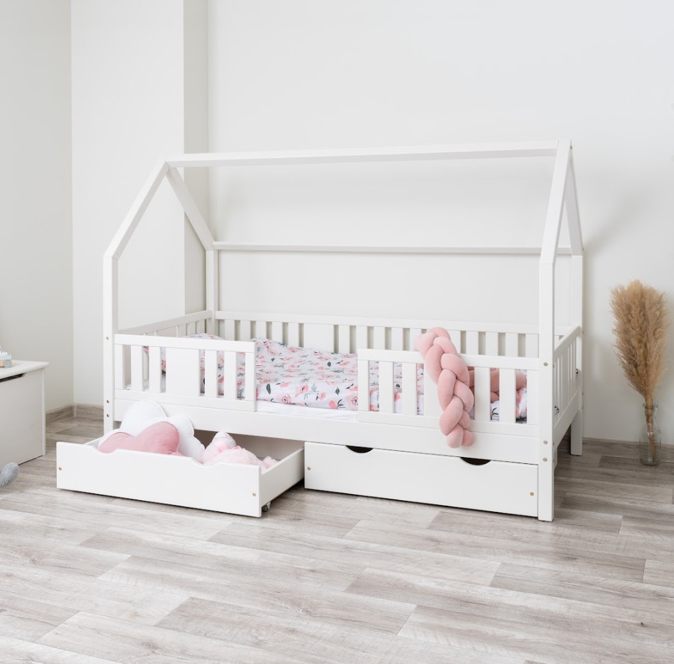 Dětská postel NIKO L 20 cm s nebesy je funkční postel do domu vyrobená z přírodního borovicového dřeva. Zvýšený rám umožňuje přidání zásuvek, čímž se zvětší úložný prostor pro ložní prádlo, oblečení a hračky. Stabilní konstrukce a ekologické barvy na vodní bázi, které splňují normy EU, zaručují bezpečnost a odolnost. Dekorativní nebesa vytvářejí v pokoji pohádkovou atmosféru a kombinují pohodlný spánek s kreativním prostorem pro hraní a relaxaci každého dítěte. Vyšší rám (20 cm) umožňuje přidání zásuvek – ideální pro uložení ložního prádla, oblečení nebo hraček. Postel NIKO L 20 je vyrobena z vysoce kvalitního, přírodního borovicového dřeva o síle 2,2 cm, které je odolné, bezpečné a hřejivé. Dřevěné povrchy jsou pečlivě broušené a chráněné ekologickými barvami na vodní bázi, které splňují evropské bezpečnostní normy EN 71-3. Postel nabízíme také ve verzi bez povrchových úprav - nelakované dřevo. Díky tomu ji lze snadno přizpůsobit - její vzhled můžete upravit mořením, lakováním nebo malováním dle vlastního uvážení. Baldachýn vytváří jedinečný, útulný prostor, který podporuje relaxaci i každodenní hraní.