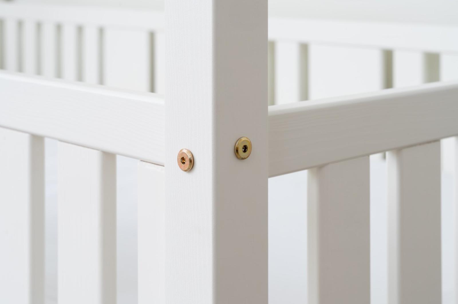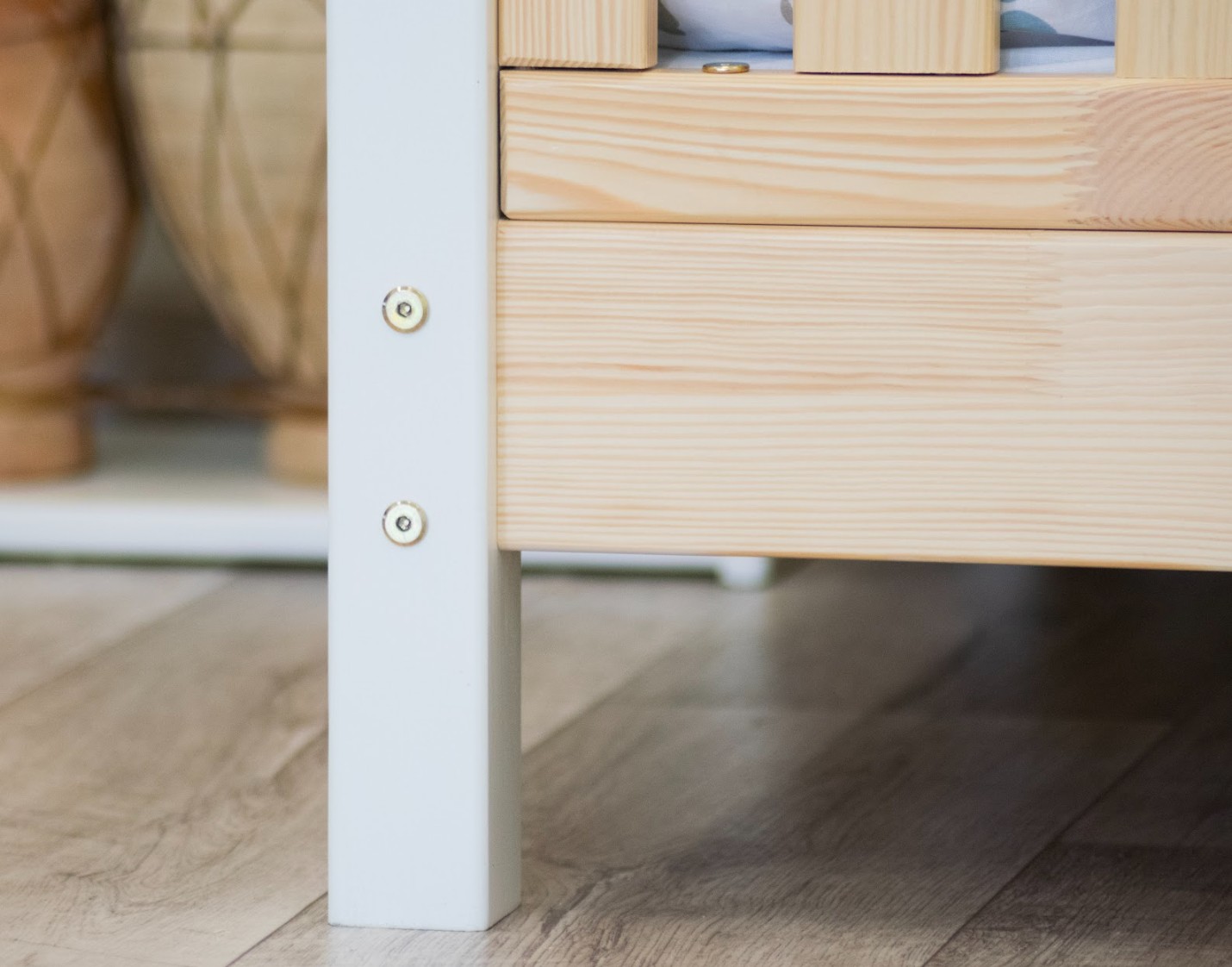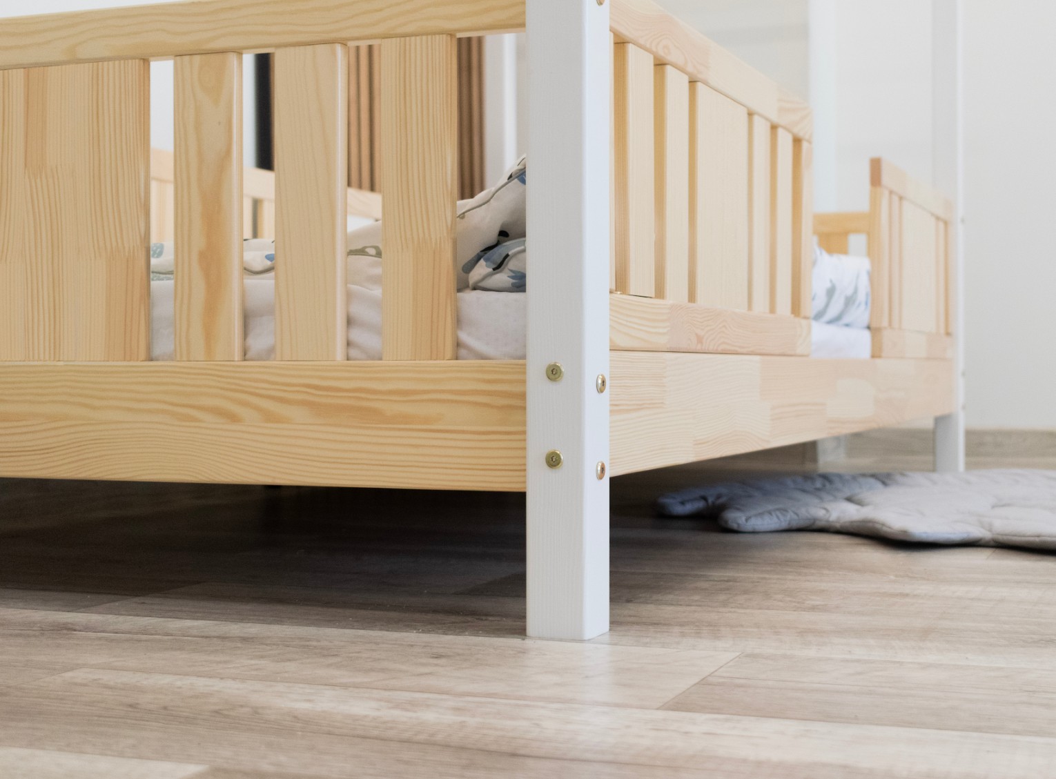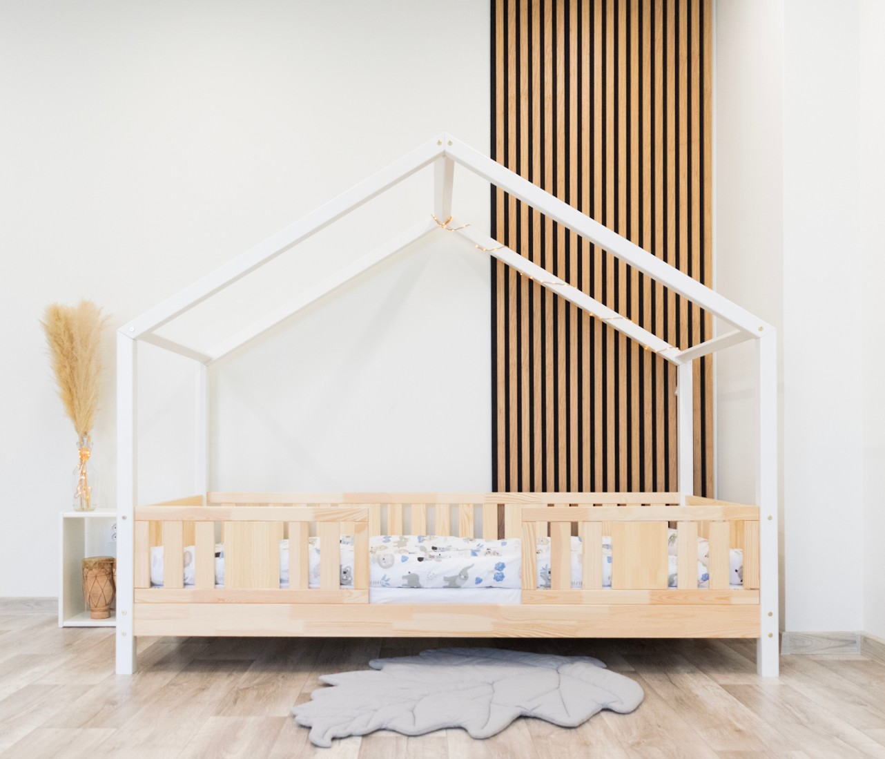 NIKO S 10 je funkční a stylová jednolůžková postel ve tvaru domečku, která spojuje kouzlo dětství s každodenním pohodlím. Rám z přírodního borovicového dřeva je osazen 10 cm vysokými nohami, což poskytuje perfektní rovnováhu mezi bezpečností a praktičností. Mírně zvýšený rám usnadňuje udržování čistoty pod postelí a zlepšuje cirkulaci vzduchu kolem matrace, přičemž zůstává dostatečně nízký, aby vaše dítě mohlo bezpečně vlézt a vylézt z postele samostatně. Tato dětská postel s nebesy podněcuje fantazii a proměňuje každodenní spánek v dobrodružství. Dřevěná nebesa ve verzi SHORT vytváří mimořádně útulnou atmosféru – lze je ozdobit světýlky, girlandami nebo látkou a vytvořit tak pohádkový prostor pro hraní, čtení a relaxaci. Domečková postel NIKO S 10 je model navržený s ohledem na nejmladší uživatele. Jeho nízká a stabilní konstrukce zvyšuje bezpečnost, zatímco výška 10 cm umožňuje rodičům snadněji udržovat dětský pokoj čistý a uklizený. Přírodní borovicové dřevo o síle 2,2 cm dodává nábytku odolnost, stabilitu a teplý, příjemný vzhled, který dokonale doplňuje dětský interiér. Každý prvek byl pečlivě broušen a všechny hrany jsou jemně zaoblené, čímž se minimalizuje riziko zranění při každodenním hraní. Celý kus je natřen ekologickými barvami na vodní bázi, které splňují evropskou normu EN 71-3. Barvy jsou bez zápachu, netoxické a bezpečné i pro nejmenší děti a alergiky. Postel nabízíme také ve verzi bez povrchových úprav - nelakované dřevo. Díky tomu ji lze snadno přizpůsobit - její vzhled můžete upravit mořením, lakováním nebo malováním dle vlastního uvážení.