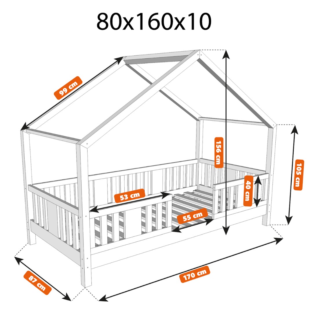 Dětská domečková postel z masivu borovice NIKO S 10 - 160x80 cm