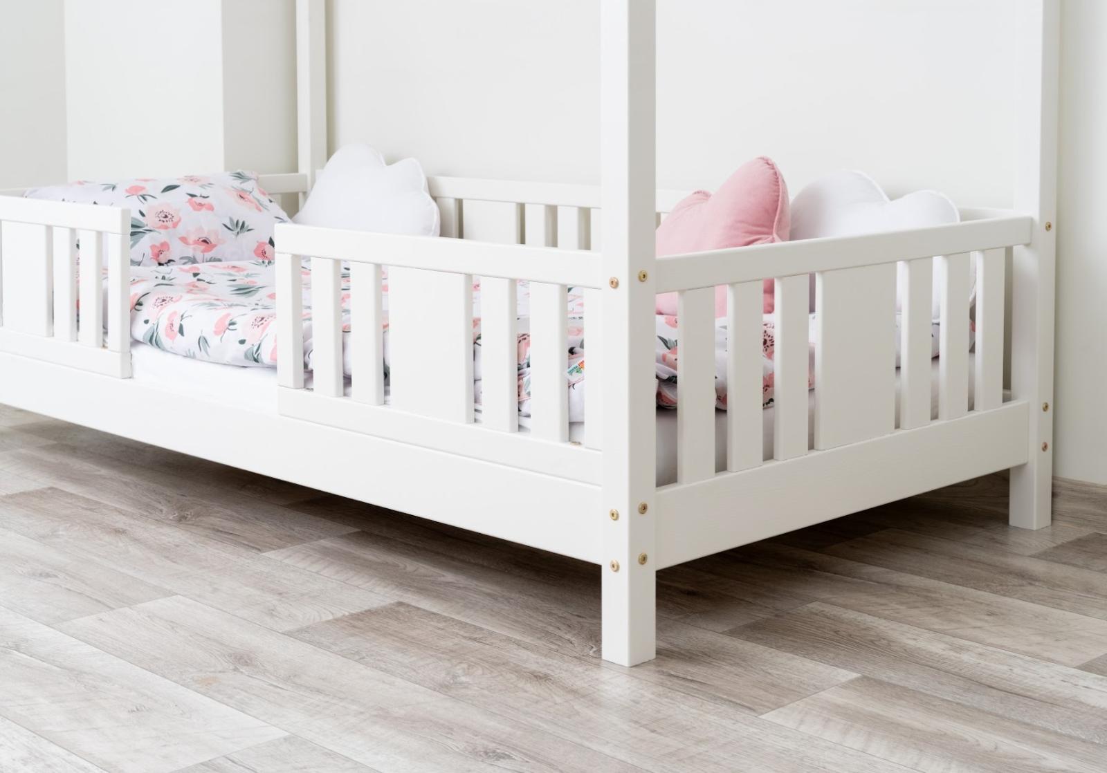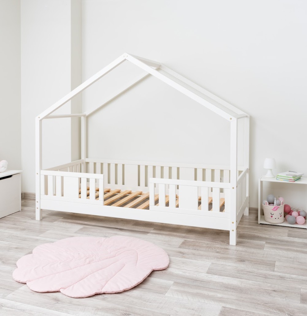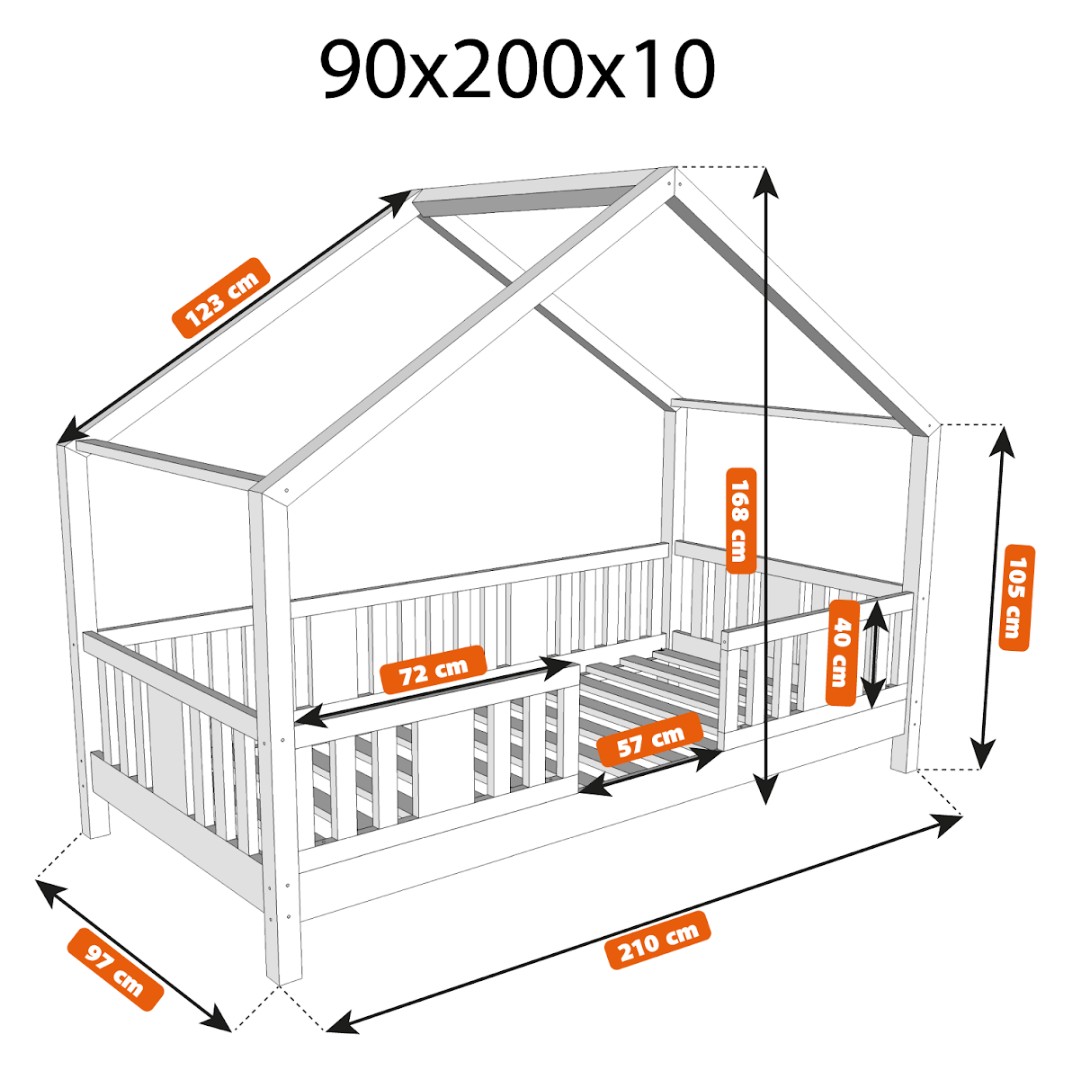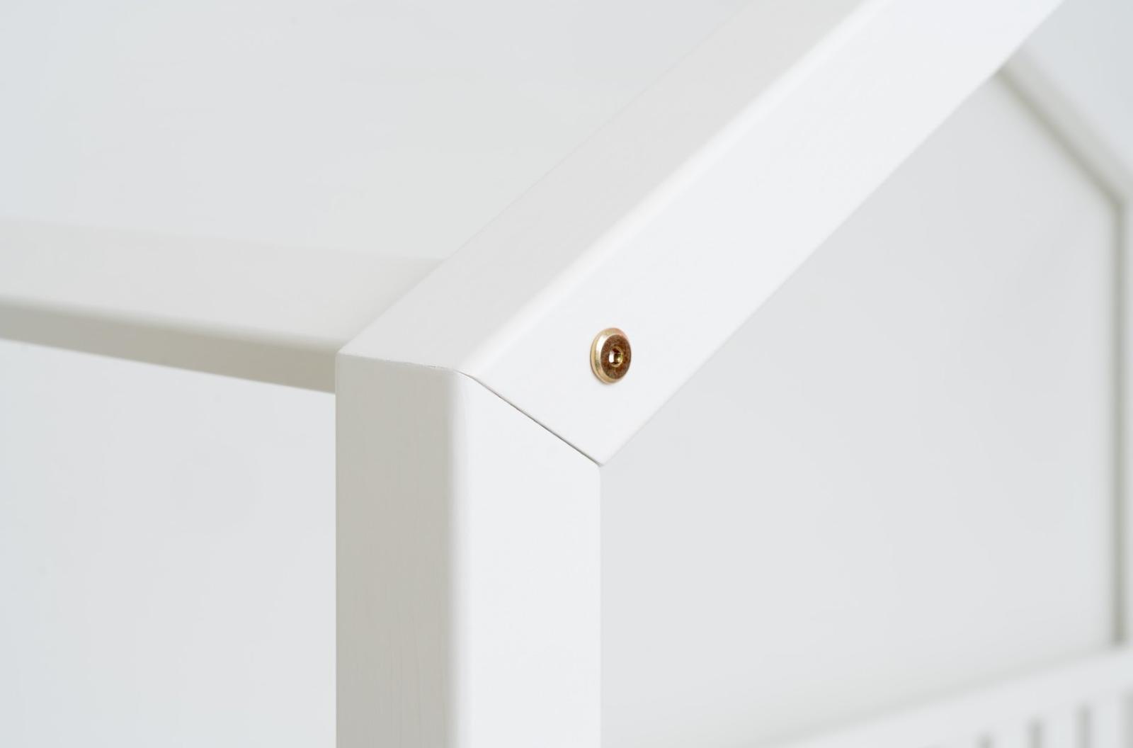 NIKO S 10 je funkční a stylová jednolůžková postel ve tvaru domečku, která spojuje kouzlo dětství s každodenním pohodlím. Rám z přírodního borovicového dřeva je osazen 10 cm vysokými nohami, což poskytuje perfektní rovnováhu mezi bezpečností a praktičností. Mírně zvýšený rám usnadňuje udržování čistoty pod postelí a zlepšuje cirkulaci vzduchu kolem matrace, přičemž zůstává dostatečně nízký, aby vaše dítě mohlo bezpečně vlézt a vylézt z postele samostatně. Tato dětská postel s nebesy podněcuje fantazii a proměňuje každodenní spánek v dobrodružství. Dřevěná nebesa ve verzi SHORT vytváří mimořádně útulnou atmosféru – lze je ozdobit světýlky, girlandami nebo látkou a vytvořit tak pohádkový prostor pro hraní, čtení a relaxaci. Domečková postel NIKO S 10 je model navržený s ohledem na nejmladší uživatele. Jeho nízká a stabilní konstrukce zvyšuje bezpečnost, zatímco výška 10 cm umožňuje rodičům snadněji udržovat dětský pokoj čistý a uklizený. Přírodní borovicové dřevo o síle 2,2 cm dodává nábytku odolnost, stabilitu a teplý, příjemný vzhled, který dokonale doplňuje dětský interiér. Každý prvek byl pečlivě broušen a všechny hrany jsou jemně zaoblené, čímž se minimalizuje riziko zranění při každodenním hraní. Celý kus je natřen ekologickými barvami na vodní bázi, které splňují evropskou normu EN 71-3. Barvy jsou bez zápachu, netoxické a bezpečné i pro nejmenší děti a alergiky. Postel nabízíme také ve verzi bez povrchových úprav - nelakované dřevo. Díky tomu ji lze snadno přizpůsobit - její vzhled můžete upravit mořením, lakováním nebo malováním dle vlastního uvážení.