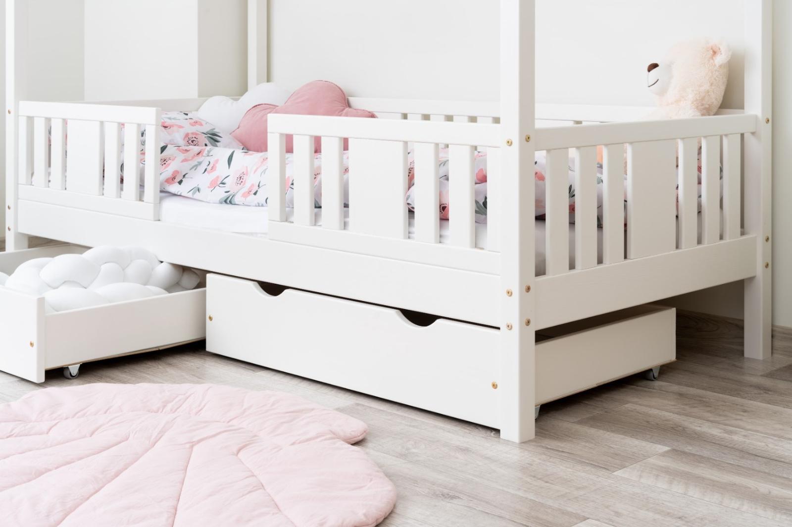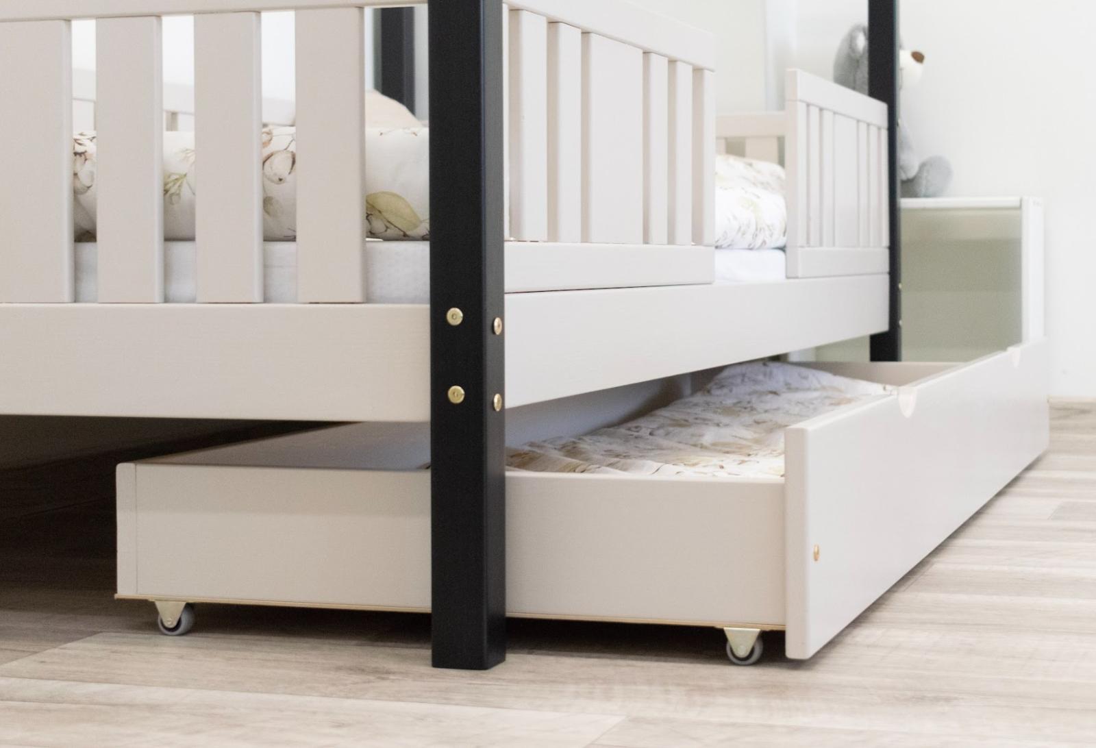 Tato dětská postel je vytvořena tak, aby ušetřila prostor v dětském pokoji. K posteli lze také dokoupit praktický a prostorný šuplík z masivu v několika variantách: