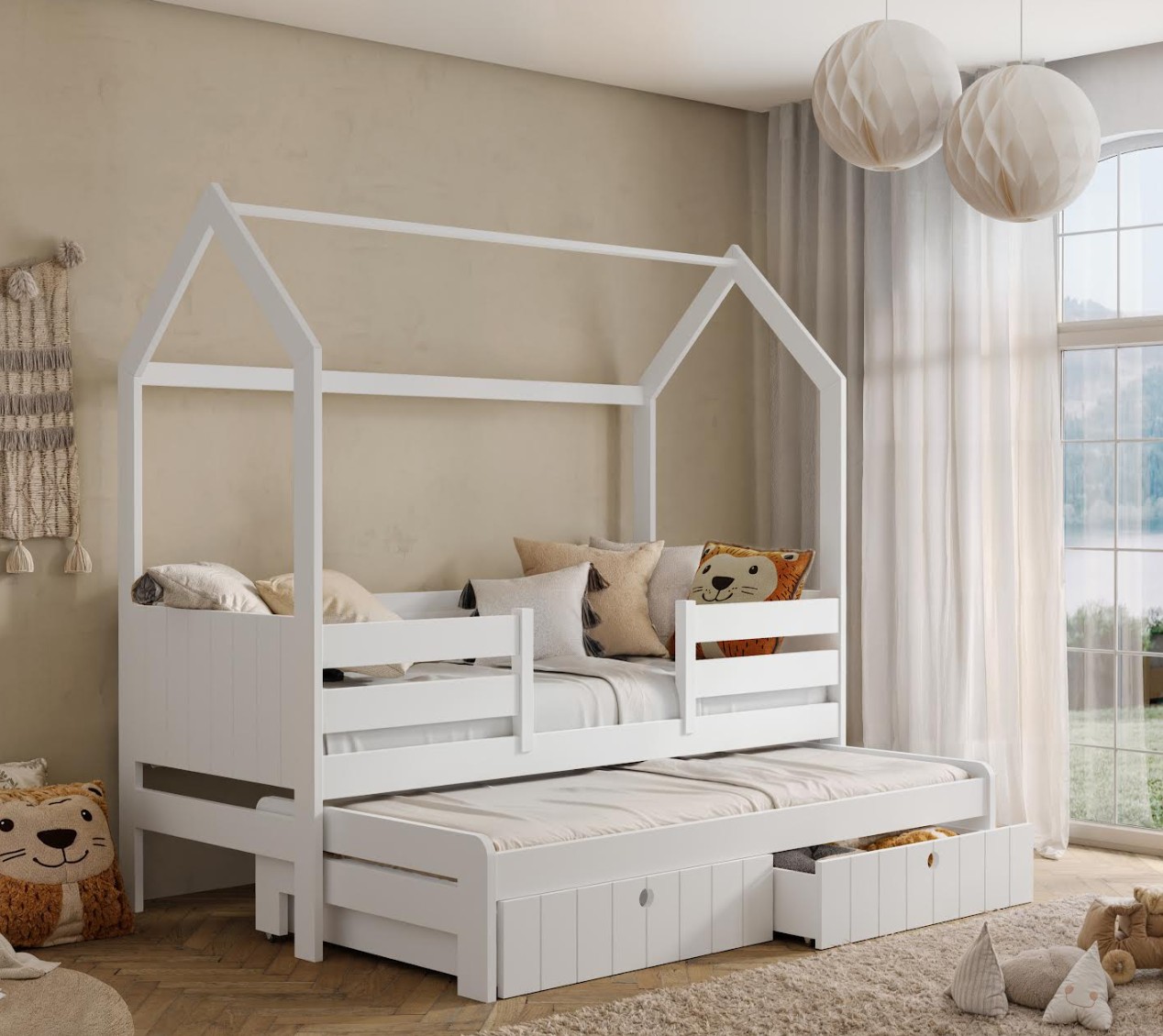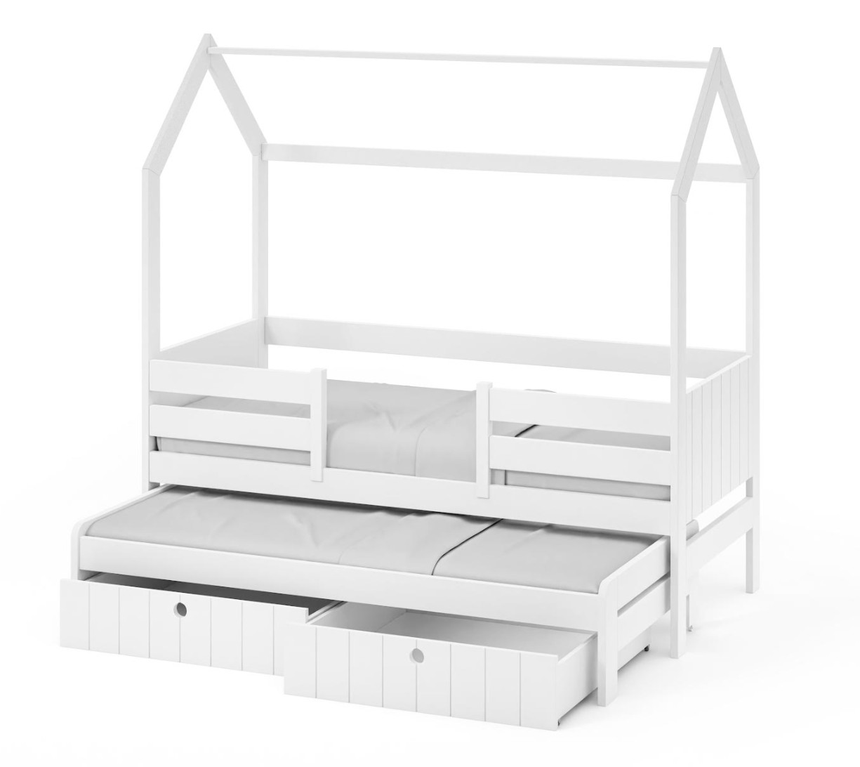 Dětská domečková postel z masivu borovice NOLAN se šuplíky a přistýlkou - 200x90 cm - bílá