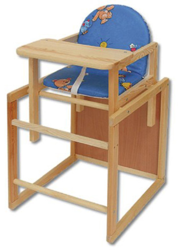 Kvalitní jídelní židlička pro nejmenší je vyrobena z masivu borovice. Může sloužit jako vyvýšená židlička k jídelnímu stolu nebo ji lze podle potřeby rozložit na stolek a židli. Na sedáku a opěráku se nachází omyvatelná látka s dětským motivem, díky které vás žádná kapka ani kousek jídla nerozhodí. K výrobě je použitý prvotřídní materiál a povrch jídelní židličky je ošetřen použitím nezávadného ekologického laku.