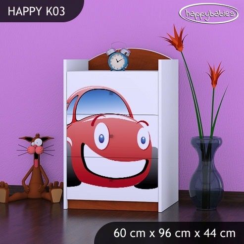 Dětské komody patří do každého dětského pokoje. Komody jsou nejen krásné, ale hlavně praktické. Dětem slouží k uložení oblečení, nejrůznějších hraček a drobností a učí je pořádku. Nabízíme Vám krásnou dětskou komodu se třemi zásuvkami, která je vyrobena z vysoce kvalitní lamino desky a na čelech šuplíků má krásný barevný potisk, který se Vašemu dítěti jistě zalíbí. Vybrat si můžete také barvu nábytku.
