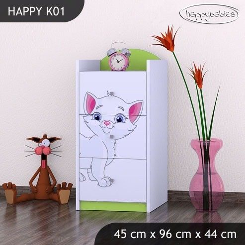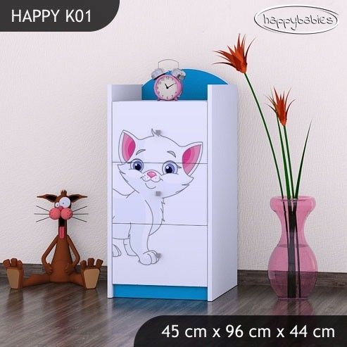 Dětské komody patří do každého dětského pokoje. Komody jsou nejen krásné, ale hlavně praktické. Dětem slouží k uložení oblečení, nejrůznějších hraček a drobností a učí je pořádku. Nabízíme Vám krásnou dětskou komodu se třemi zásuvkami, která je vyrobena z vysoce kvalitní lamino desky a na čelech šuplíků má krásný barevný potisk, který se Vašemu dítěti jistě zalíbí. Vybrat si můžete také barvu nábytku.