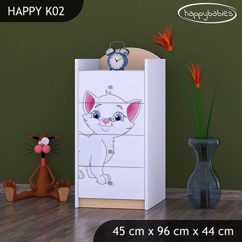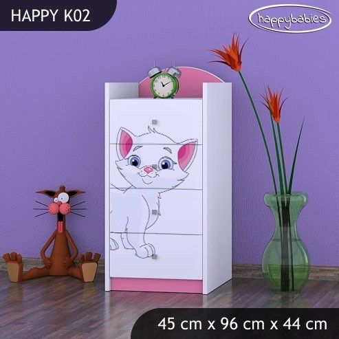 Dětské komody patří do každého dětského pokoje. Komody jsou nejen krásné, ale hlavně praktické. Dětem slouží k uložení oblečení, nejrůznějších hraček a drobností a učí je pořádku. Nabízíme Vám krásnou dětskou komodu se čtyřmi zásuvkami, která je vyrobena z vysoce kvalitní lamino desky a na čelech šuplíků má krásný barevný potisk, který se Vašemu dítěti jistě zalíbí. Vybrat si můžete i barvu nábytku.