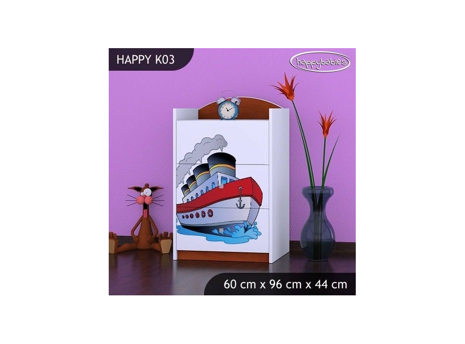 Dětské komody patří do každého dětského pokoje. Komody jsou nejen krásné, ale hlavně praktické. Dětem slouží k uložení oblečení, nejrůznějších hraček a drobností a učí je pořádku. Nabízíme Vám krásnou dětskou komodu se třemi zásuvkami, která je vyrobena z vysoce kvalitní lamino desky a na čelech šuplíků má krásný barevný potisk, který se Vašemu dítěti jistě zalíbí. Vybrat si můžete také barvu nábytku.