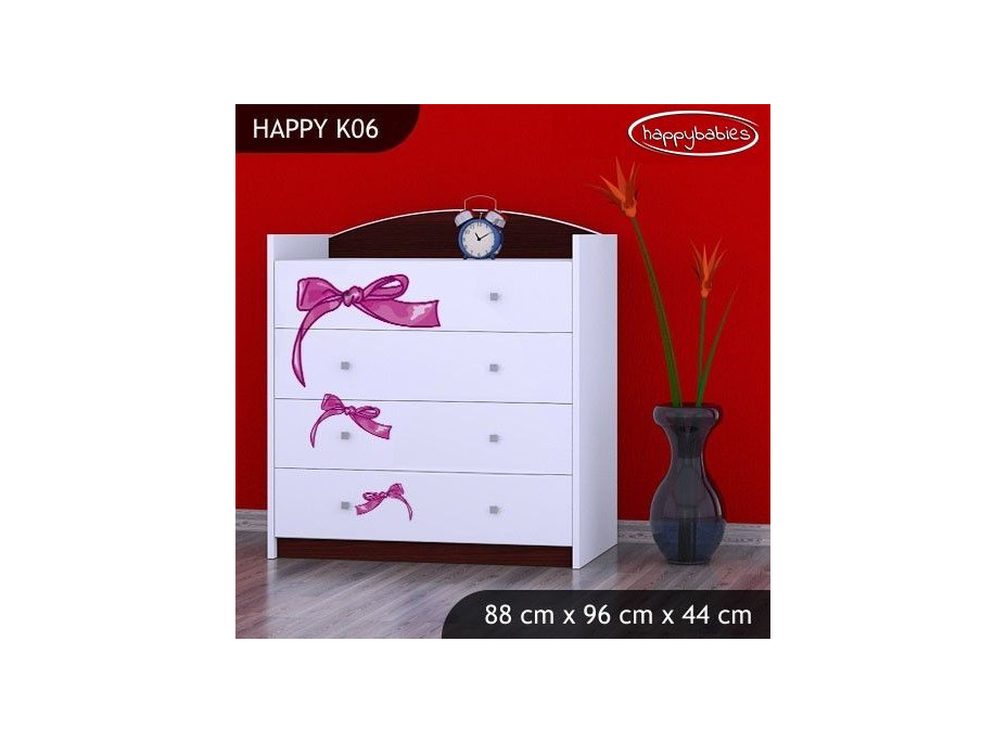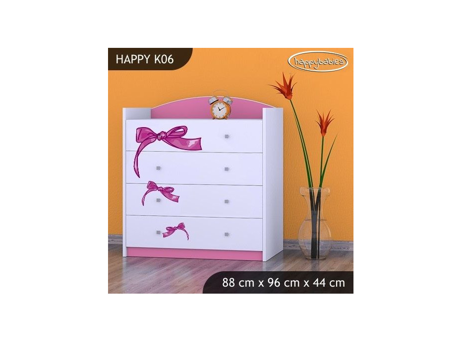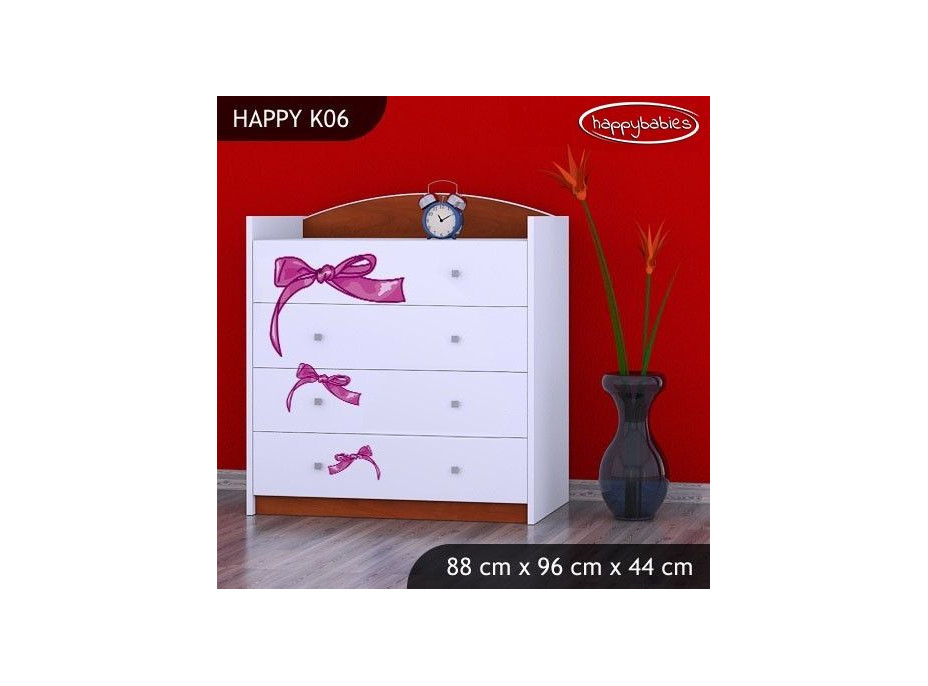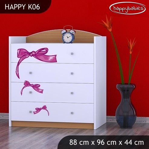 Dětské komody patří do každého dětského pokoje. Komody jsou nejen krásné, ale hlavně praktické. Dětem slouží k uložení oblečení, nejrůznějších hraček a drobností a učí je pořádku. Nabízíme Vám krásnou dětskou komodu se čtyřmi zásuvkami, která je vyrobena z vysoce kvalitní lamino desky a na čelech šuplíků má krásný barevný potisk, který se Vašemu dítěti jistě zalíbí. Zvolit si můžete také barvu nábytku, aby dokonale ladil s dětským pokojíčkem.
