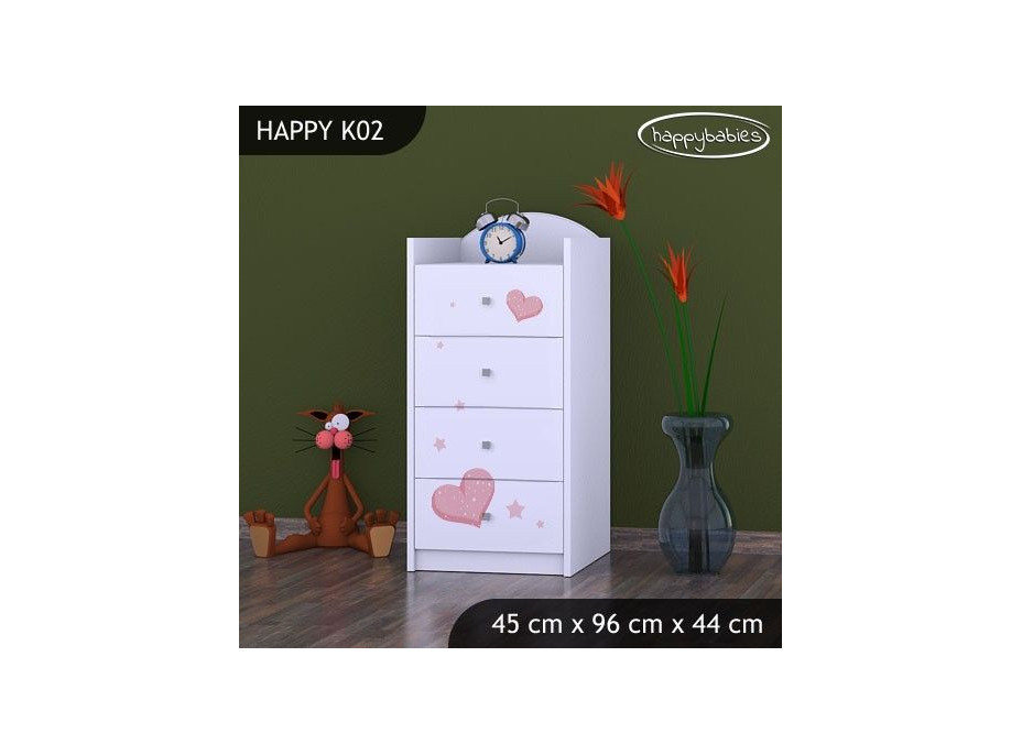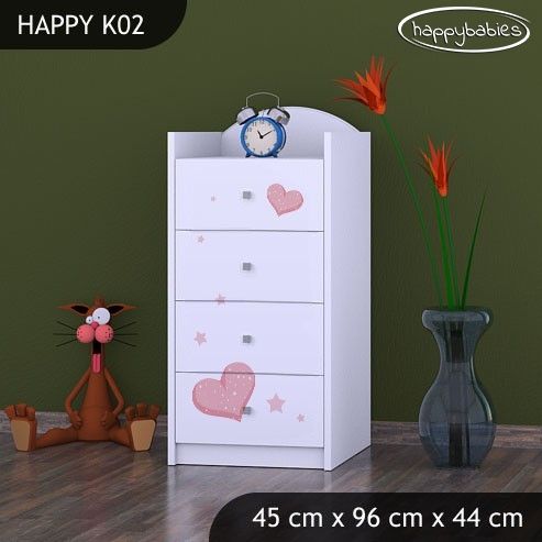 Dětské komody patří do každého dětského pokoje. Komody jsou nejen krásné, ale hlavně praktické. Dětem slouží k uložení oblečení, nejrůznějších hraček a drobností a učí je pořádku. Nabízíme Vám krásnou dětskou komodu se čtyřmi zásuvkami, která je vyrobena z vysoce kvalitní lamino desky a na čelech šuplíků má krásný barevný potisk, který se Vašemu dítěti jistě zalíbí. Vybrat si můžete i barvu nábytku.