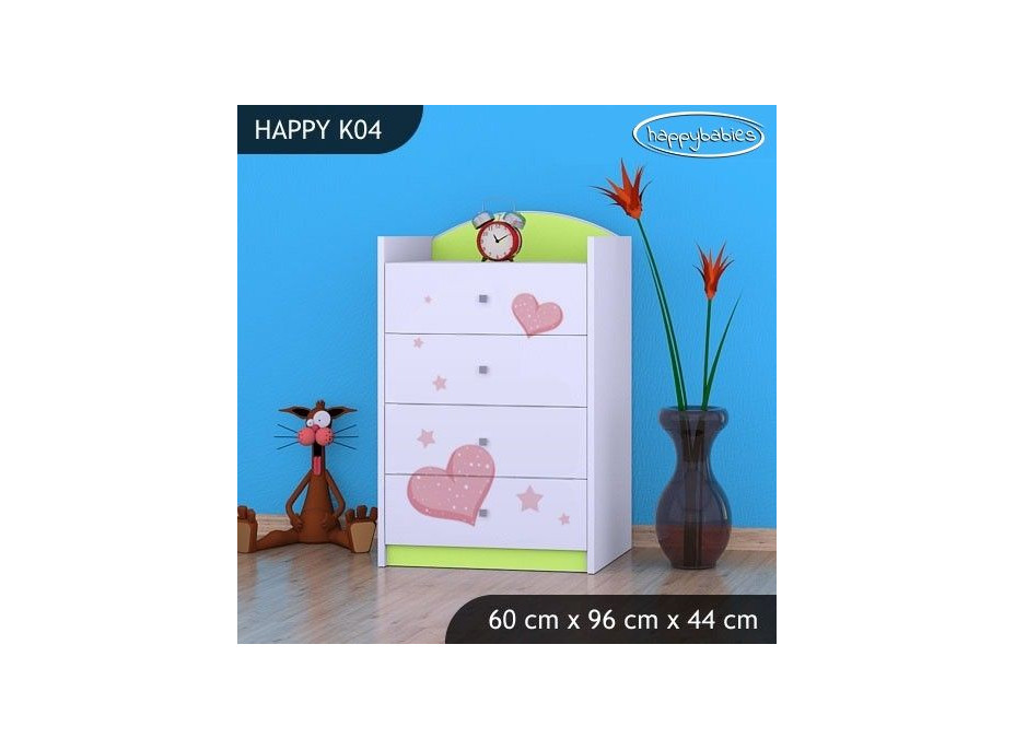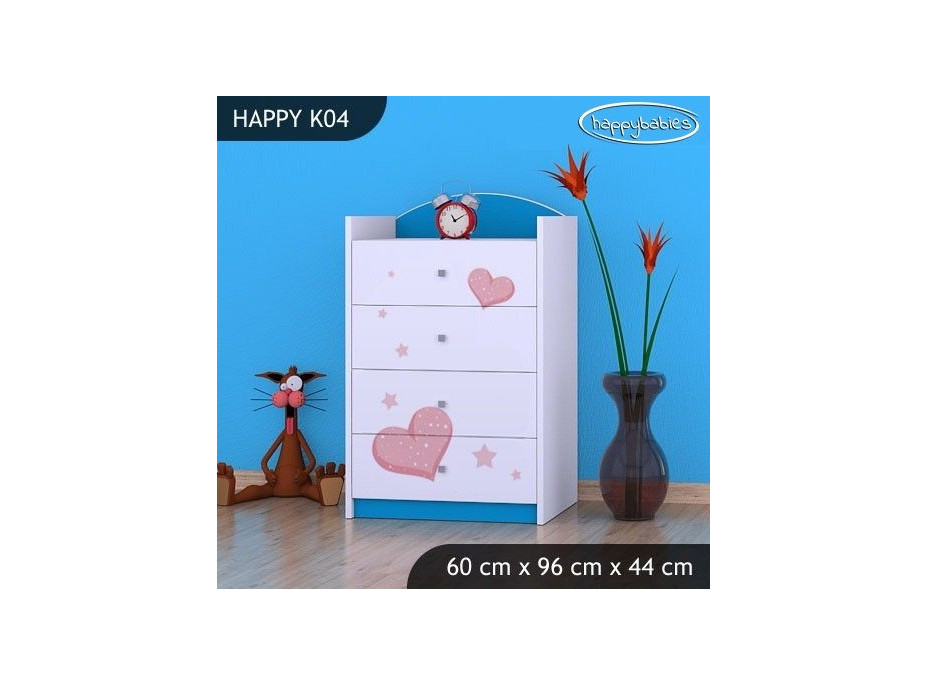 Dětské komody patří do každého dětského pokoje. Komody jsou nejen krásné, ale hlavně praktické. Dětem slouží k uložení oblečení, nejrůznějších hraček a drobností a učí je pořádku. Nabízíme Vám krásnou dětskou komodu se čtyřmi zásuvkami, která je vyrobena z vysoce kvalitní lamino desky a na čelech šuplíků má krásný barevný potisk, který se Vašemu dítěti jistě zalíbí. Vybrat si můžete také barvu nábytku.