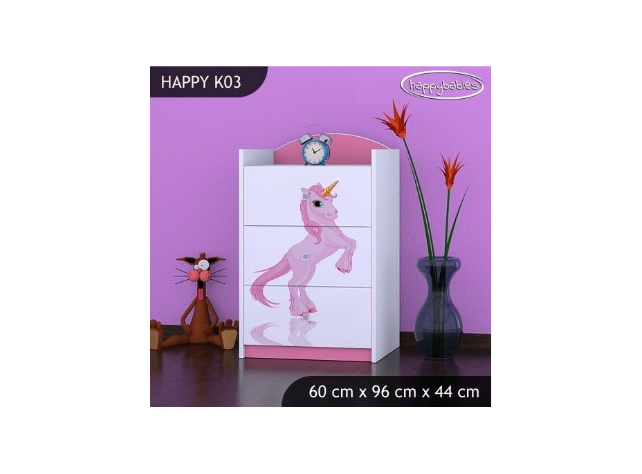 Dětské komody patří do každého dětského pokoje. Komody jsou nejen krásné, ale hlavně praktické. Dětem slouží k uložení oblečení, nejrůznějších hraček a drobností a učí je pořádku. Nabízíme Vám krásnou dětskou komodu se třemi zásuvkami, která je vyrobena z vysoce kvalitní lamino desky a na čelech šuplíků má krásný barevný potisk, který se Vašemu dítěti jistě zalíbí. Vybrat si můžete také barvu nábytku.