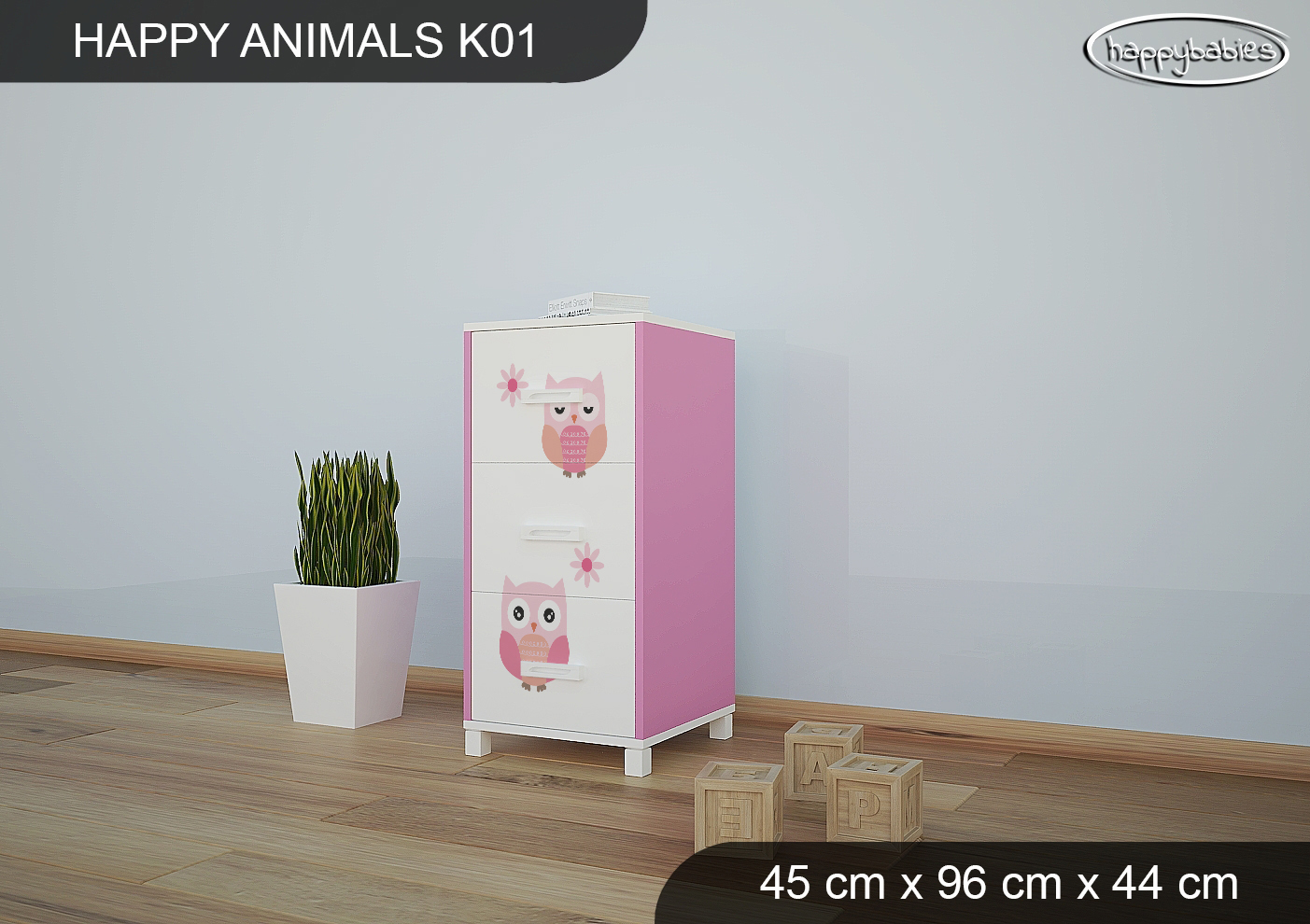 Dětská komoda RŮŽOVÁ SOVIČKA - TYP 1