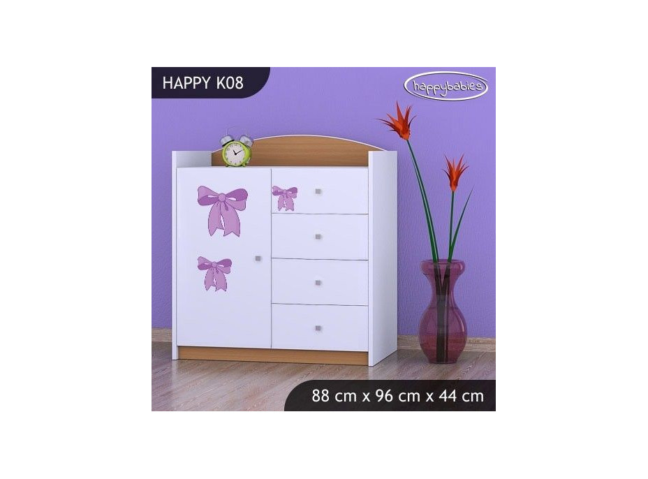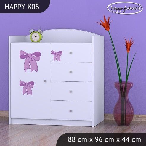 Dětské komody patří do každého dětského pokoje. Komody jsou nejen krásné, ale hlavně praktické. Dětem slouží k uložení oblečení, nejrůznějších hraček a drobností a učí je pořádku. Nabízíme Vám krásnou dětskou komodu se čtyřmi zásuvkami a jednou skříňkou, která je vyrobena z vysoce kvalitní lamino desky a na čelech šuplíků má krásný barevný potisk, který se Vašemu dítěti jistě zalíbí. Zvolit si můžete také barvu nábytku, aby dokonale ladil s dětským pokojíčkem.