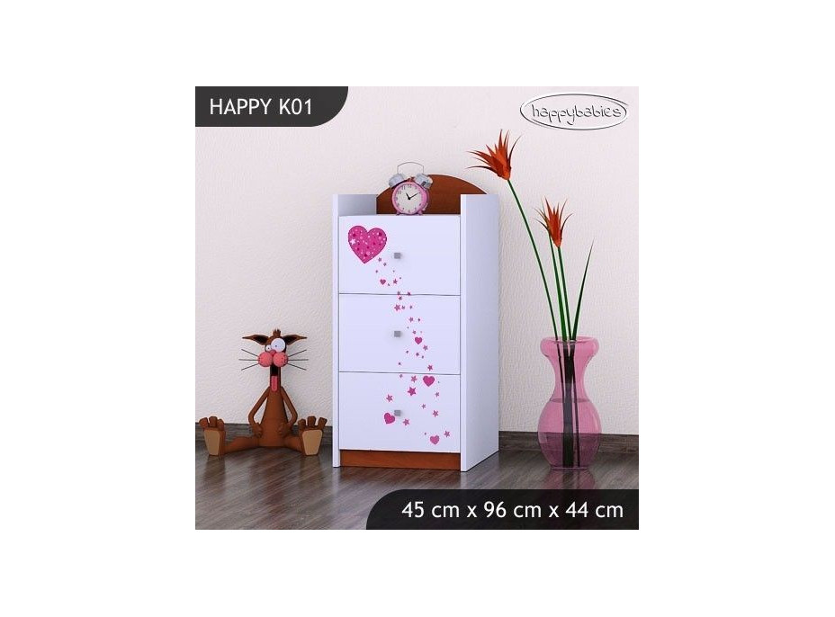 Dětské komody patří do každého dětského pokoje. Komody jsou nejen krásné, ale hlavně praktické. Dětem slouží k uložení oblečení, nejrůznějších hraček a drobností a učí je pořádku. Nabízíme Vám krásnou dětskou komodu se třemi zásuvkami, která je vyrobena z vysoce kvalitní lamino desky a na čelech šuplíků má krásný barevný potisk, který se Vašemu dítěti jistě zalíbí. Vybrat si můžete také barvu nábytku.