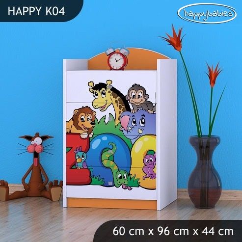 Dětské komody patří do každého dětského pokoje. Komody jsou nejen krásné, ale hlavně praktické. Dětem slouží k uložení oblečení, nejrůznějších hraček a drobností a učí je pořádku. Nabízíme Vám krásnou dětskou komodu se čtyřmi zásuvkami, která je vyrobena z vysoce kvalitní lamino desky a na čelech šuplíků má krásný barevný potisk, který se Vašemu dítěti jistě zalíbí. Vybrat si můžete také barvu nábytku.
