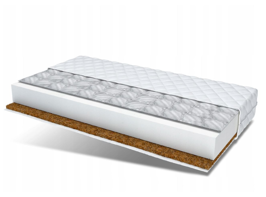 Kokosová vrstva - Tvoří ji kokosová vlákna lisovaná za velkého tlaku v páře. Kokosová vlákna jsou elastická, uvnitř dutá, nepráší ani nepíchají. Předností kokosové vrstvy je schopnost odvádět vlhkost a pot, navíc je odolná vůči bakteriím i houbám. Kokosové vlákno se vyznačuje dokonalými termickými vlastnostmi a zajišťuje odpovídající cirkulaci vzduchu uvnitř této vrstvy matrace. Kokosová rohož tvoří cca 1 cm výšky matrace a je charakteristická zvýšenou tuhostí.