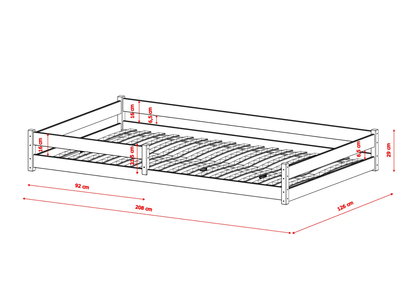 - Celková výška postele: 29 cm