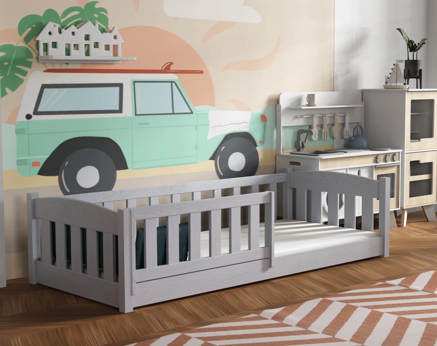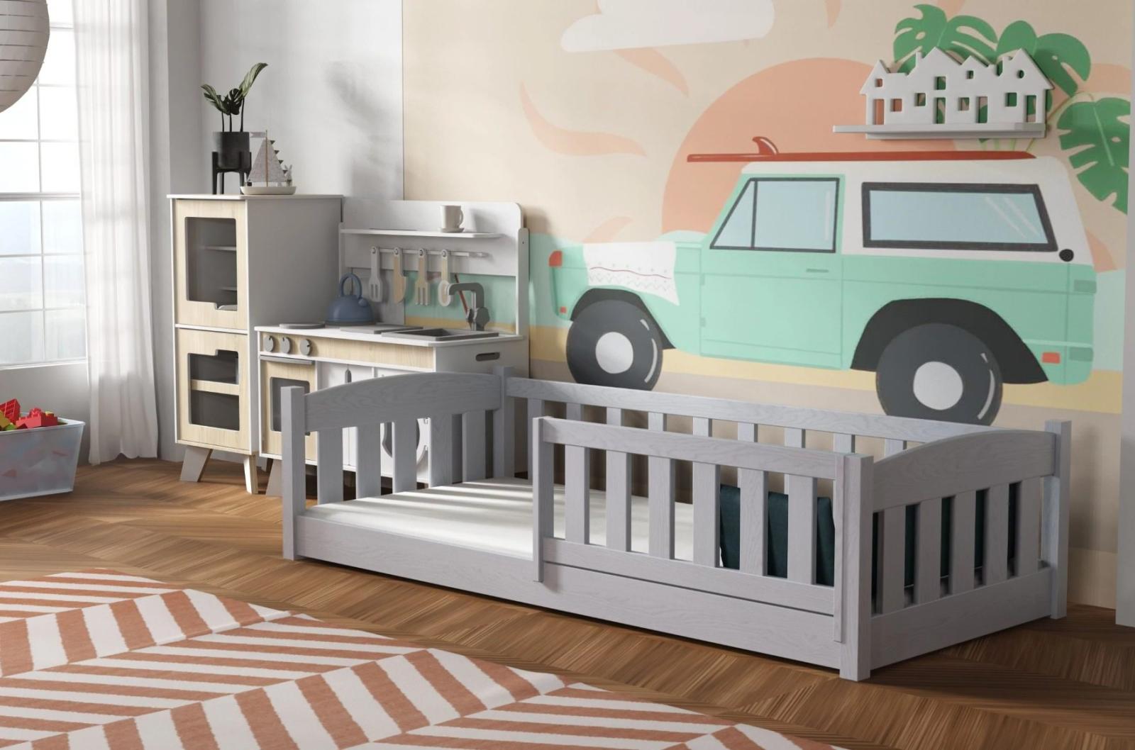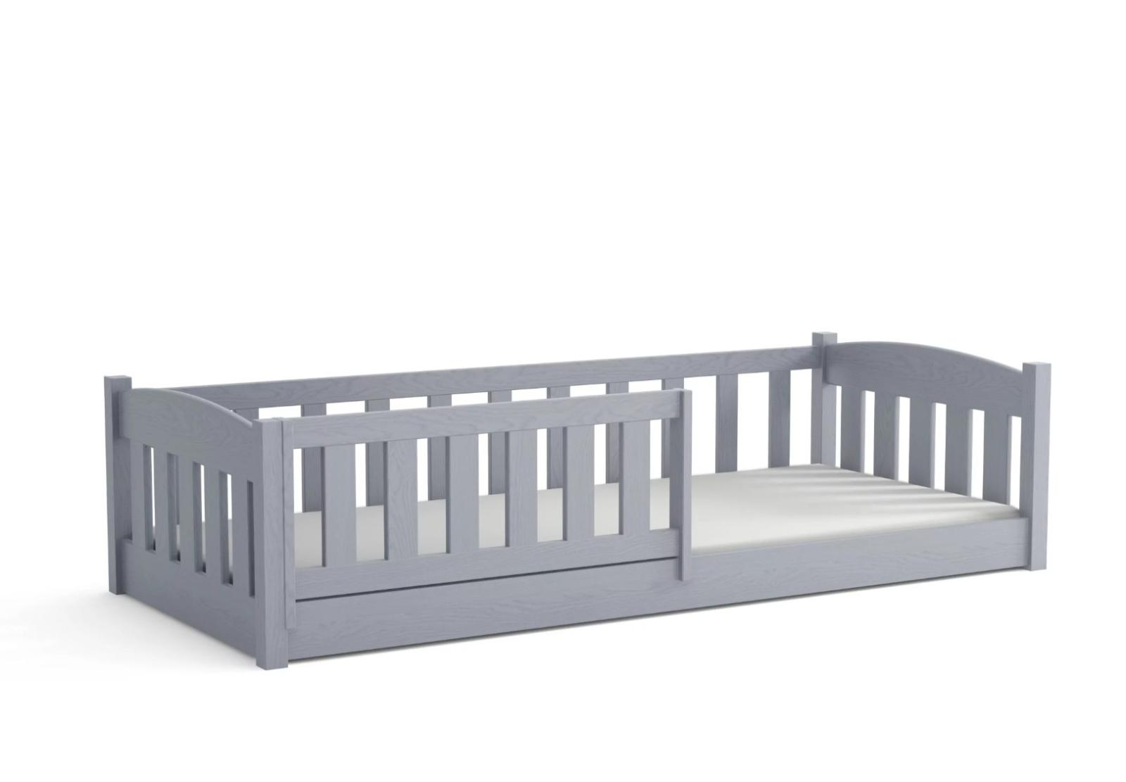 Dětská Montessori postel z masivu borovice BEN - 200x90 cm - ŠEDÁ