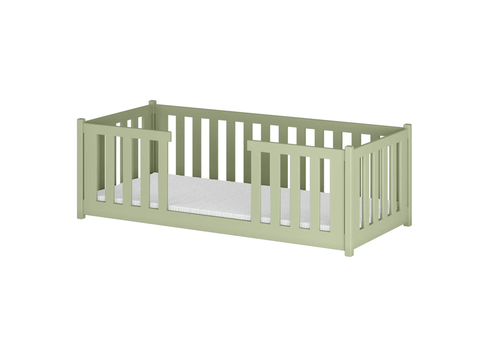 Dětská Montessori postel z masivu borovice FERDA - 200x90 cm - OLIVOVĚ ZELENÁ