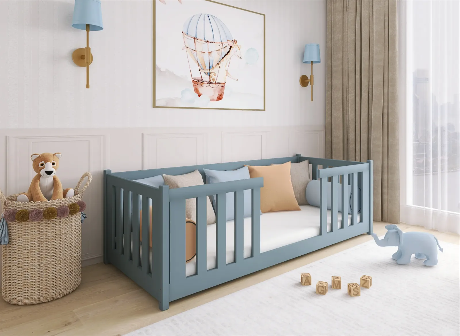 Maximální doporučené zatížení postele je 90 kg. I přes svou nízkou konstrukci je postel uzpůsobena tak, aby zabránila pádu dítěte, a to díky pevné ochranné bariérce a vysokým bočnicím. Vaše dítě se tak bude cítit v klidu a bezpečí. Dětská postel zaujme svým krásným vzhledem a bude se skvěle vyjímat v každém dětském pokoji i pro nejmenší děti.