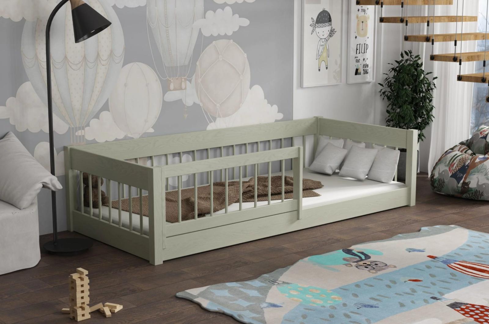 Dětská Montessori postel z masivu borovice LITTLE LUNARI - 200x90 cm - OLIVOVĚ ZELENÁ