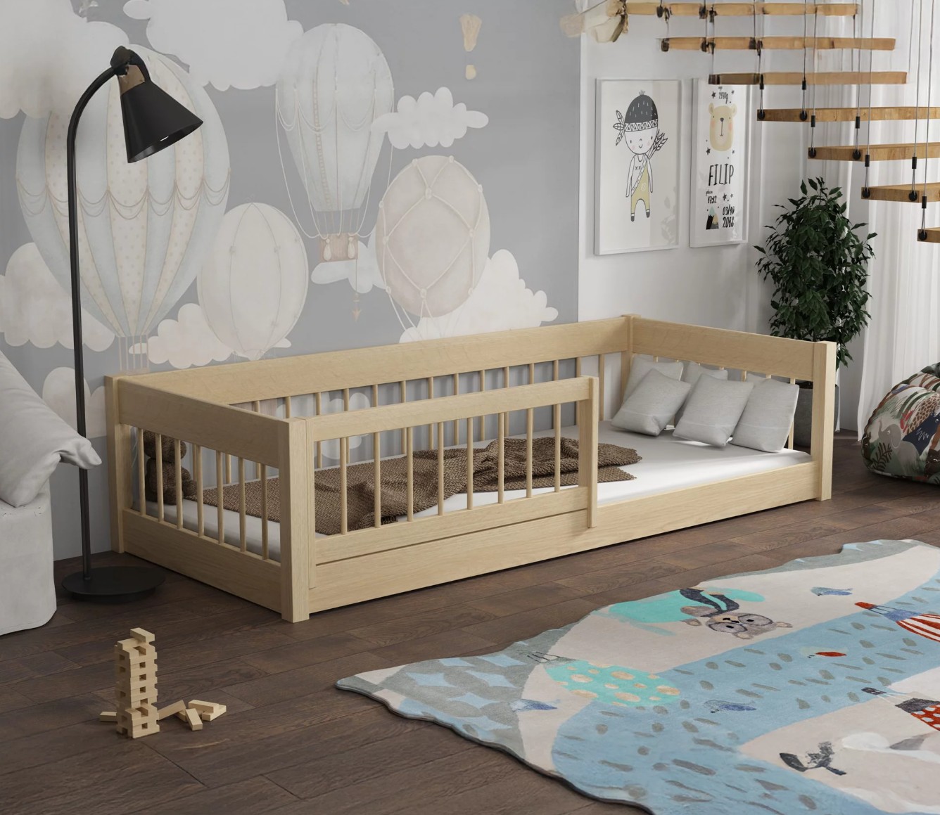 Model Little Lunari je moderní alternativou ke klasickým vysokým postelím – kompaktní, bezpečný a navržený s ohledem na nejmladší uživatele a rodiče, kteří si cení minimalismu. Díky absenci zásuvek a nízkému umístění u podlahy je ideální do pokojů, kde je pohodlí a podpora nezávislosti klíčová již od nejranějších let dítěte. Díky nízké konstrukci a volnému vstupu ji řadíme mezi Montessori nábytek. Princip Montessori klade důraz na volnost dítěte, což tato postel nabízí. Dítě má do postele volný přístup a díky tomu, že je postel nízká a chráněná bočnicemi, je bezpečná také pro nejmenší děti. Little Lunari je perfektní volbou pro rodiče, kteří hledají postel, která podporuje nezávislost jejich dítěte a poskytuje pohodlí při každodenním používání. Kulaté příčky jí dodávají lehký a vzdušný vzhled a nízký design umožňuje vašemu dítěti snadné vstávání a lezení. Díky jednoduchému a univerzálnímu designu se Little Lunari perfektně hodí do moderních i klasických dětských interiérů. Její konstrukce z přírodního borovicového dřeva zaručuje trvanlivost a odolnost vůči každodennímu používání. Postel je potažena zdravotně nezávadným lakem na vodní bázi, který je bezpečný pro děti a neobsahuje dráždivé pachy. Postel je dodávána včetně kvalitního roštu a odnímatelné ochranné bariérky s možností univerzální montáže na pravou i levou stranu.