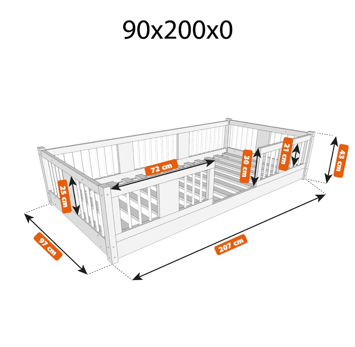 Dětská Montessori postel z masivu borovice LUNA - 200x90 cm