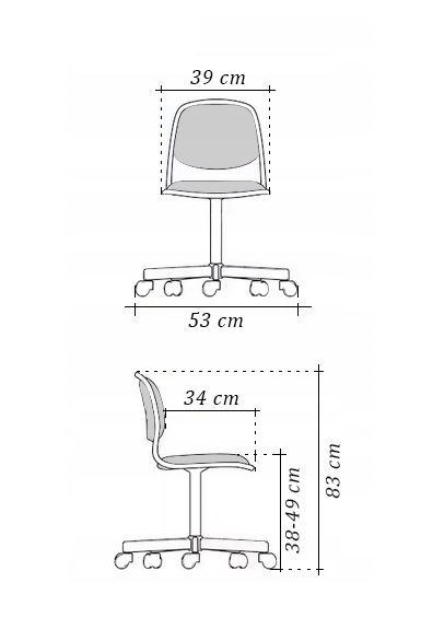 - výška s kolečky po vrch sedáku: 38-49 cm (nastavitelná)