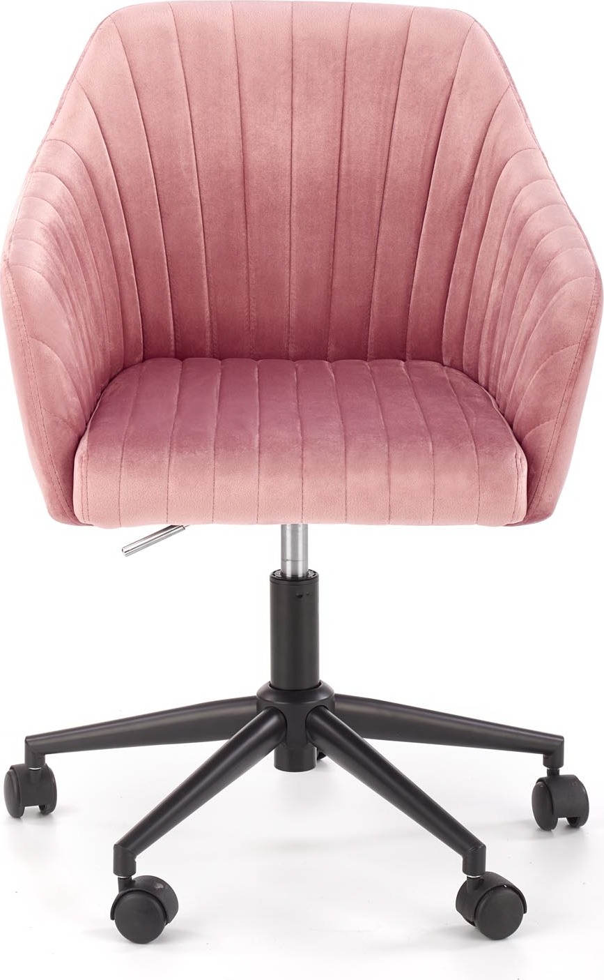 Moderní a kvalitní dětská otočná židle se vyznačuje vysokou kvalitou použitých materiálů a precizním zpracováním. Sedák i opěrák židle jsou čalouněny látkou velvet. Židle je výškově nastavitelná pomocí pístu, je vybavena základním mechanismem a zvládne zatížení až 90 kg. Kolečka jsou vhodná pro jakýkoliv typ povrchu.