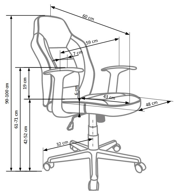 Moderní a kvalitní dětská otočná židle RACE se vyznačuje vysokou kvalitou použitých materiálů a precizním zpracováním. Stabilní konstrukci otočné židle RACE tvoří základna s pěti rameny a snadný pohyb zajišťují plastová kolečka. Židle je vyrobena z membránové látky, eko kůže a perforované eko kůže. Ke kvalitnímu sezení přispívají zaoblené plastové područky. Židle je výškově nastavitelná s využitím mechanismu TILT. Díky mechanismu TILT je možné regulovat výšku sedáku pomocí plynového zvedáku a můžete také regulovat houpací funkci pomocí regulačního šroubu uloženého pod sedákem. Zvládne zatížení až 110 kg. Kolečka jsou vhodná pro jakýkoliv typ povrchu. Židle RACE se také náramně hodí k námi nabízeným dětským psacím a PC stolům.