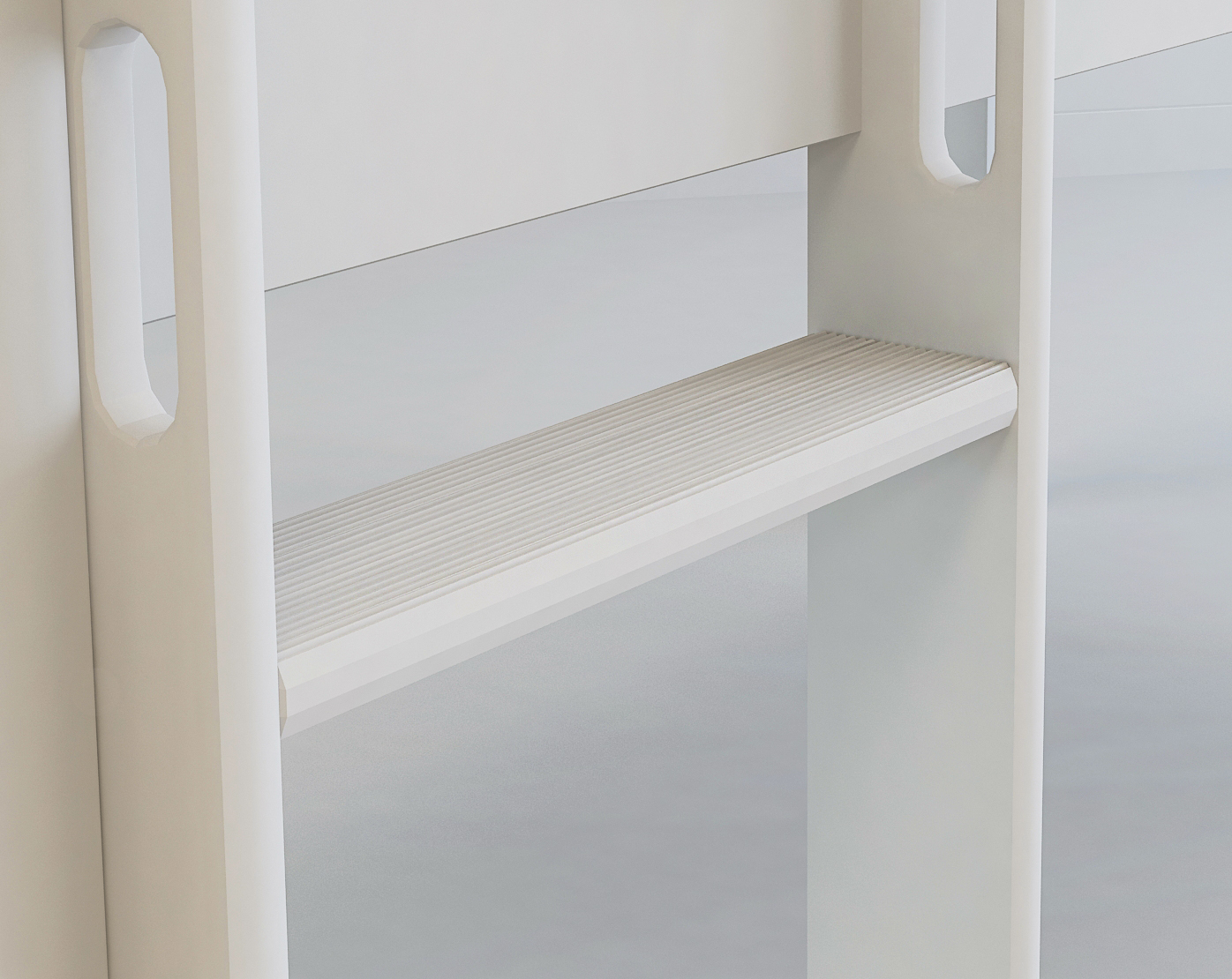 Toto patrové dvoulůžko je vysoce kvalitní a stabilní. Aby se předešlo úrazům, jsou hrany postele zaobleny. Žebřík má příjemně široké nášlapy s protiskluzovým vroubkováním a díry po stranách žebříku pro přichytávání se. Lezení na postel je tedy pohodlné. Samozřejmostí jsou také zábrany proti spadnutí po celém obvodu horního lůžka.