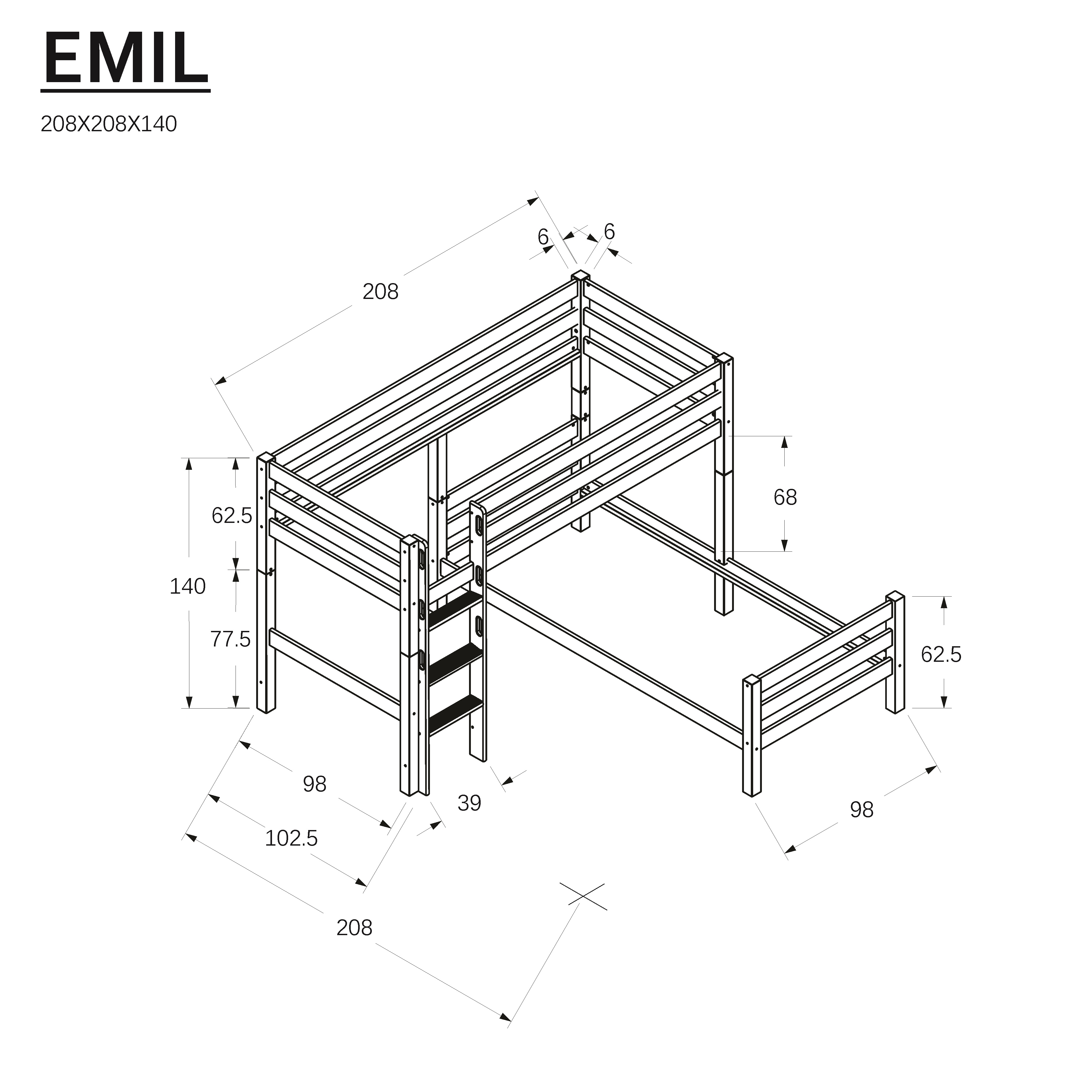 Dětská patrová postel do "L" z MASIVU BUK - EMIL 200x90cm