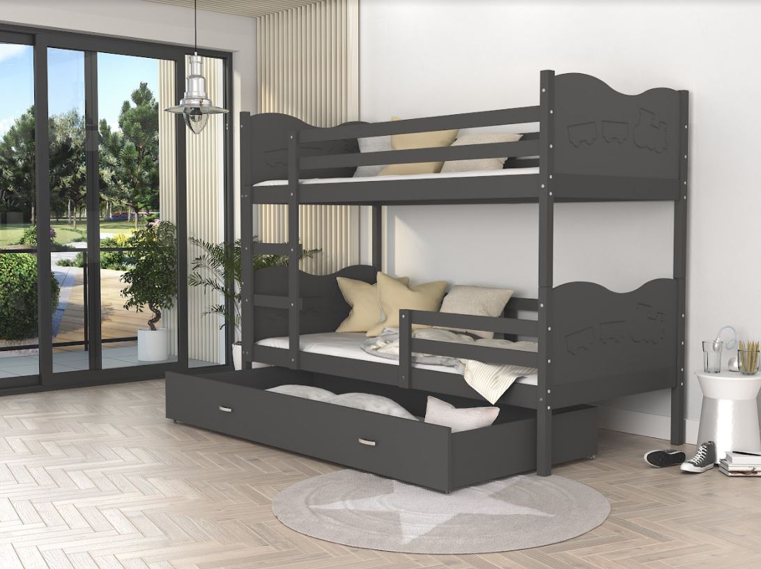 Dětská patrová postel se šuplíkem MAX R - 190x80 cm - šedá - vláček