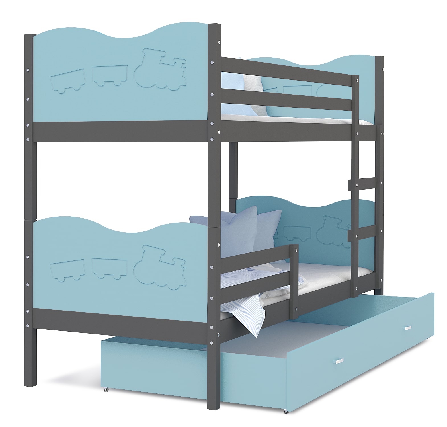 Dětská patrová postel se šuplíkem MAX R - 200x90 cm - modro-šedá - vláček