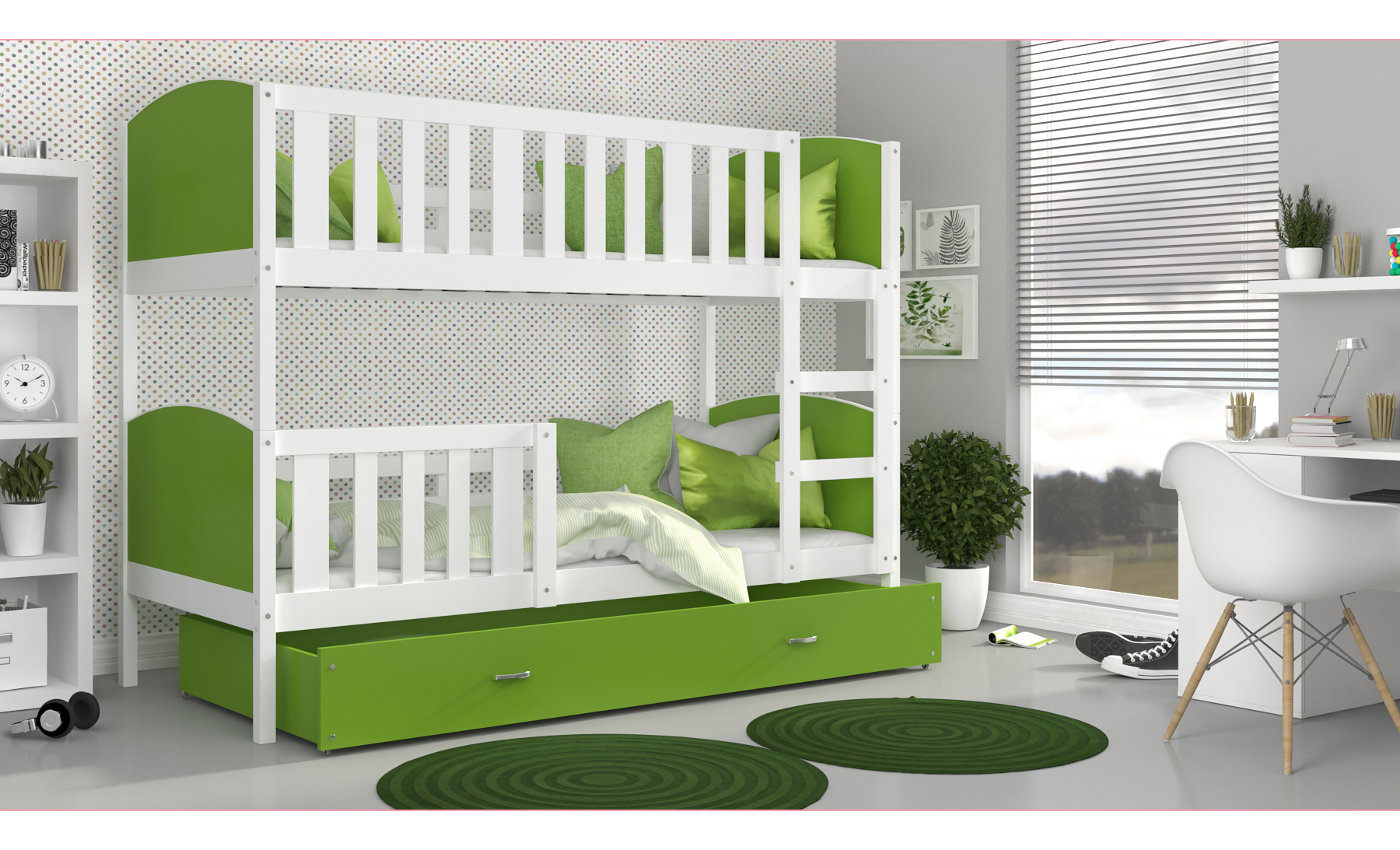 Dětská patrová postel se šuplíkem TAMI Q - 160x80 cm - zeleno-bílá
