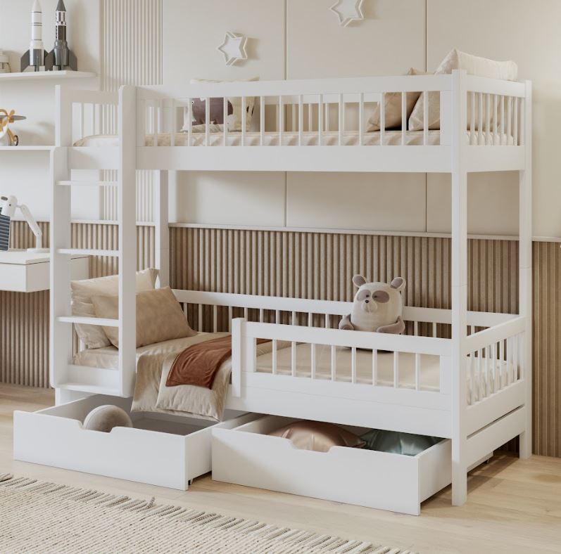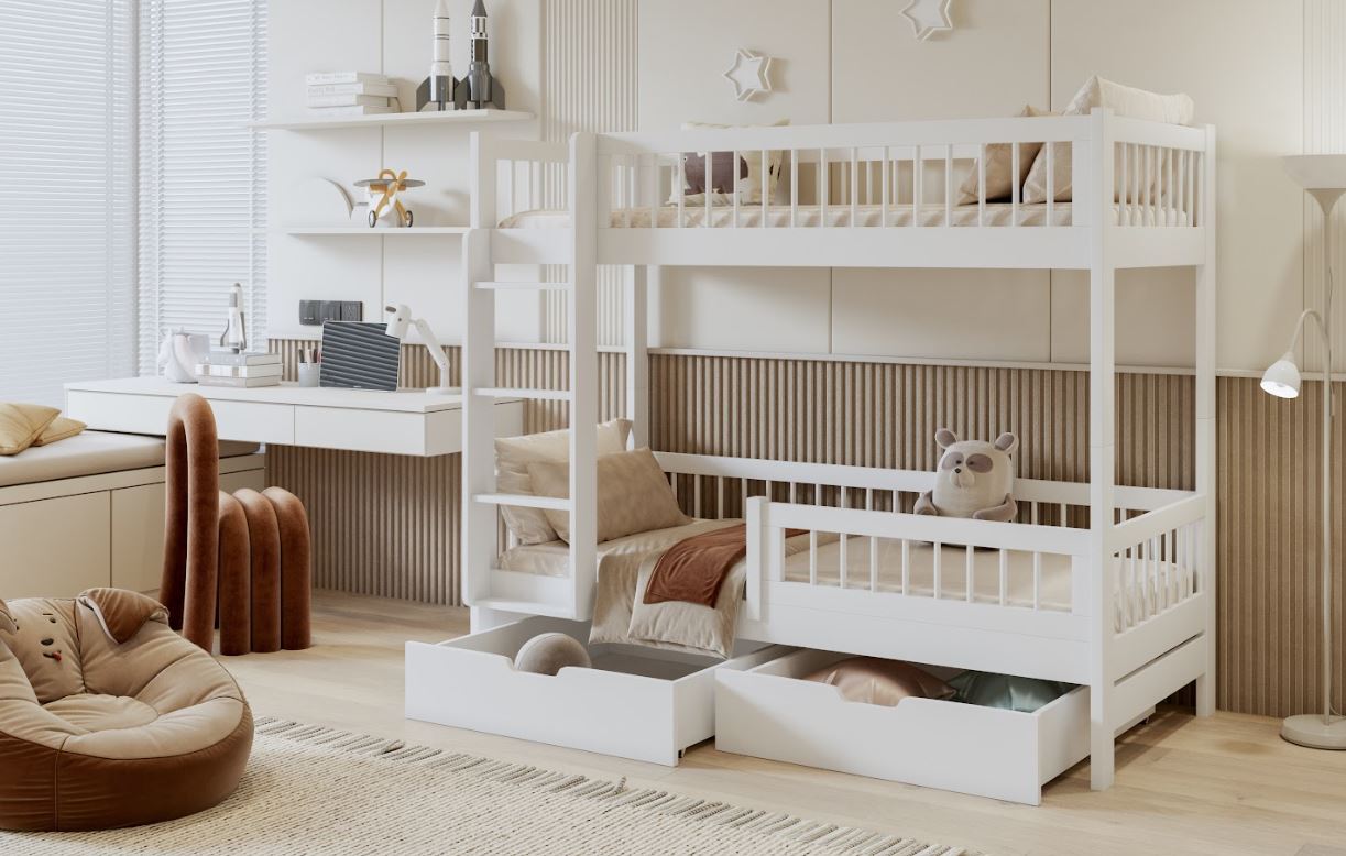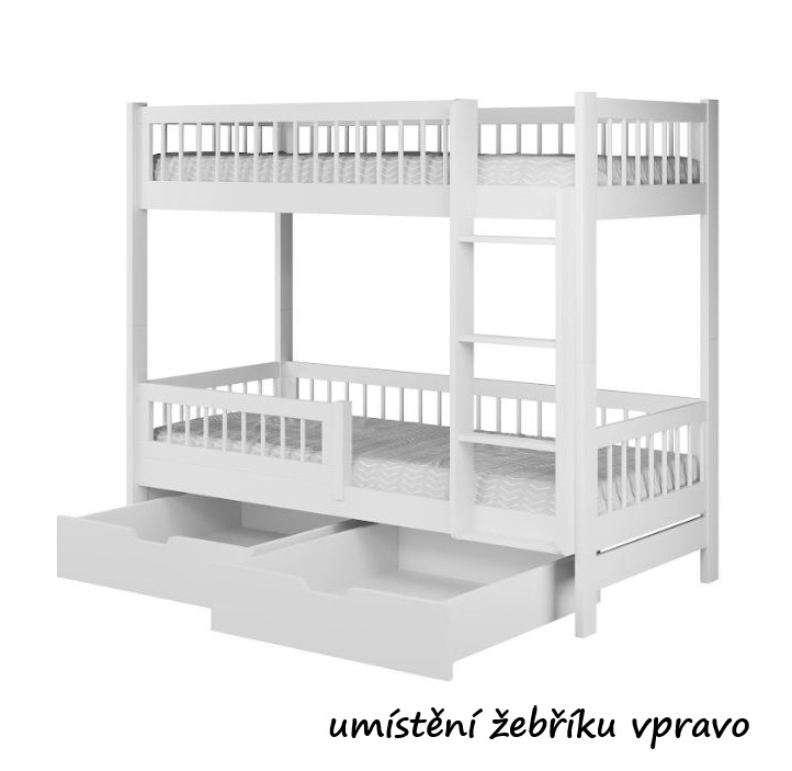 Dětská patrová postel se šuplíky z masivu borovice COEN - 180x80 cm - bílá