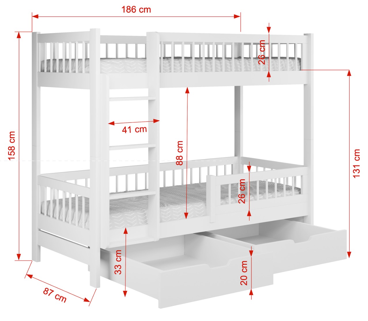• Celková výška postele: 158 cm
