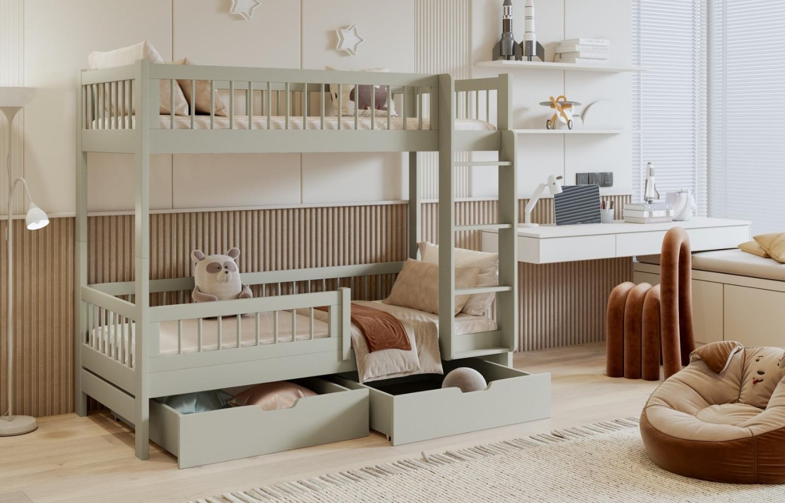 Dětská patrová postel se šuplíky z masivu borovice COEN - 180x80 cm - olivově zelená