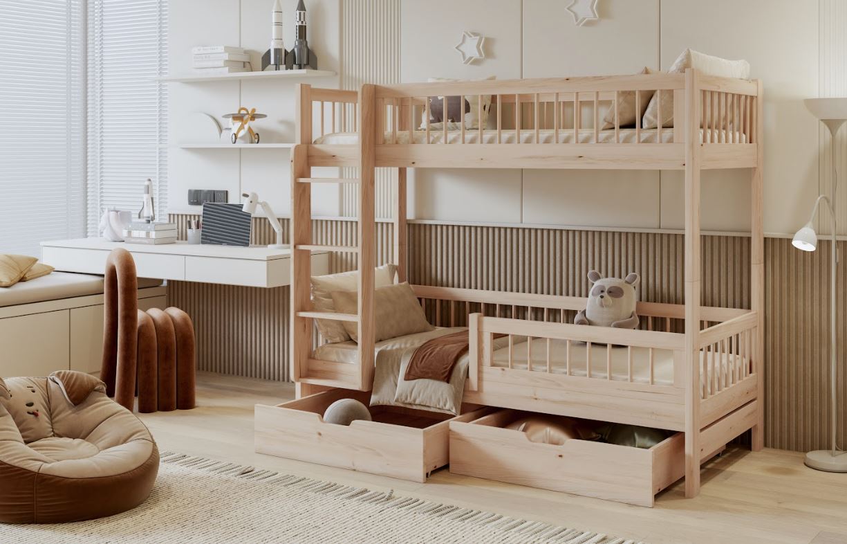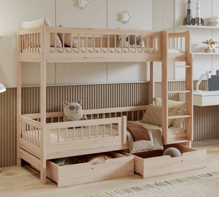 Dětská patrová postel se šuplíky z masivu borovice COEN - 180x80 cm - přírodní borovice