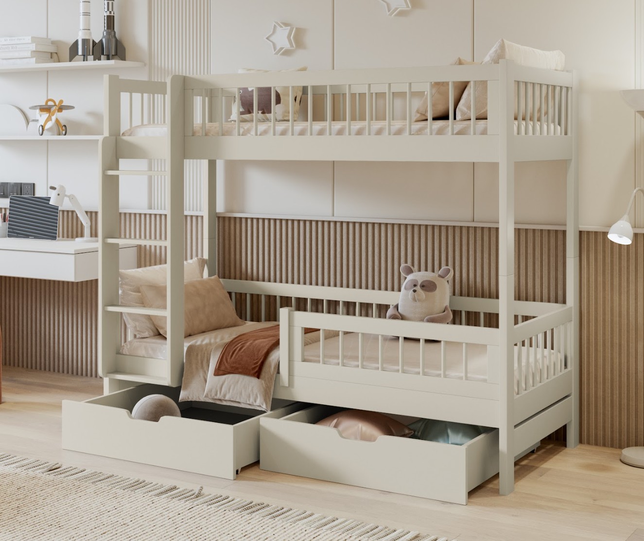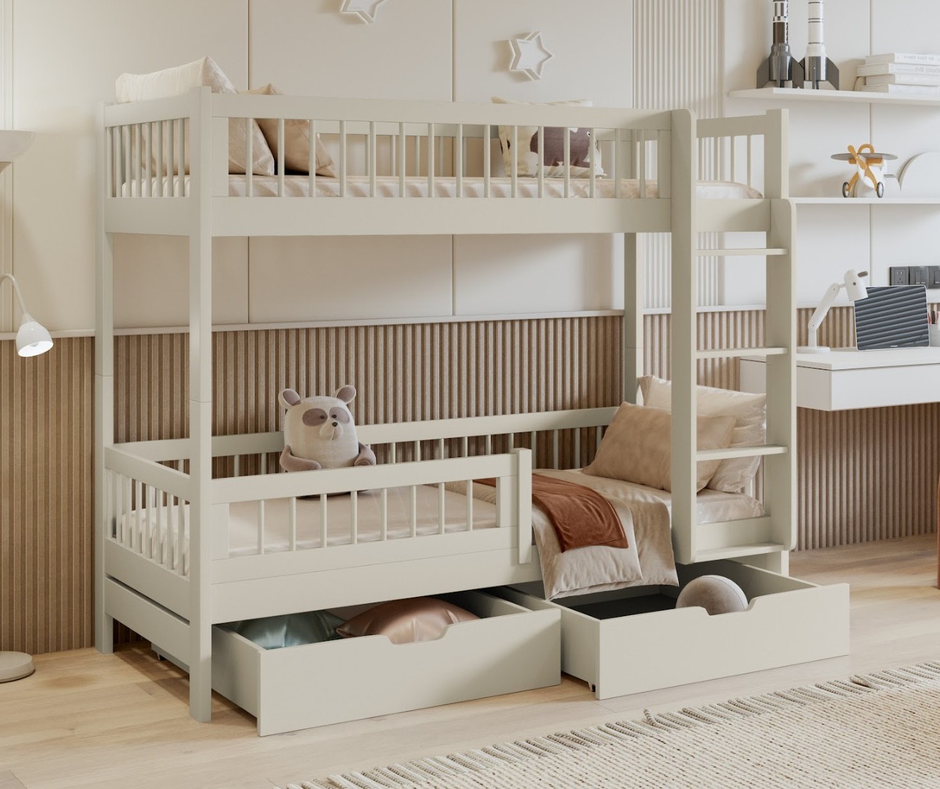 Dětská patrová postel se šuplíky z masivu borovice COEN - 200x90 cm - kašmírová