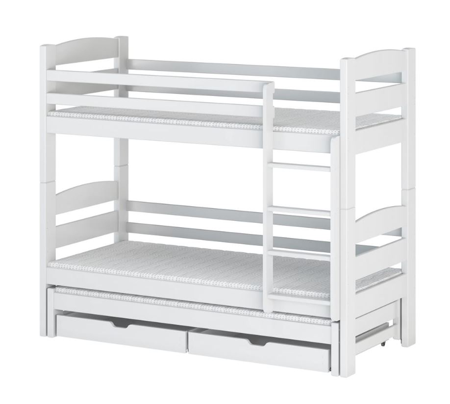 Dětská patrová postel z masivu borovice CYRIL s přistýlkou a šuplíky - 200x90 cm - BÍLÁ