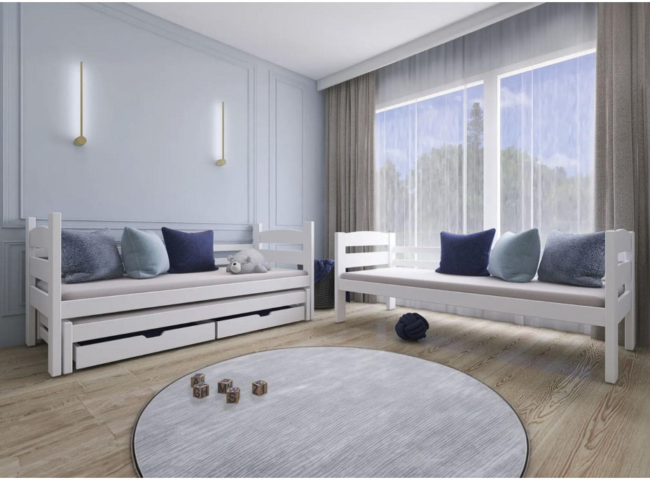 Dětská postel z masivu borovice CYRIL patří mezi dětské postele, které vás zaujmou nejen svým krásným vzhledem, ale také praktičností. Postele z této řady jsou velmi pečlivě vyrobeny, mají robustní konstrukci a jsou propracovány do posledního detailu. Borovicové dřevo, které se k jejich výrobě používá, je té nejvyšší kvality. Postel je odolná proti poškrábání a to díky třem vrstvám ekologického laku s certifikací EN 71-3 : 2013. Lak je bez zápachu a vyznačuje se vynikající světlostálostí. K posteli dodáváme ZDARMA dva samostatné menší prostorné šuplíky s gumovými kolečky, kde můžete uložit věci nebo hračky všeho druhu. Patrovou postel můžete rozdělit na tři samostatná lůžka.