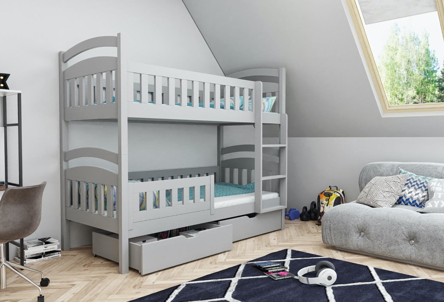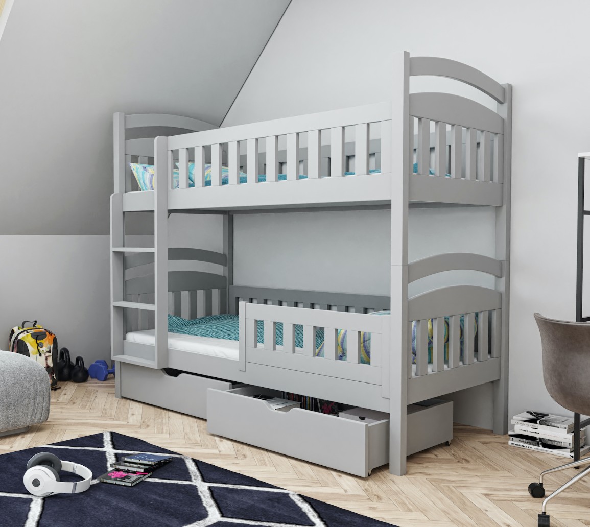 Dětská patrová postel z masivu borovice DOMINIK II se šuplíky - 200x90 cm - šedá